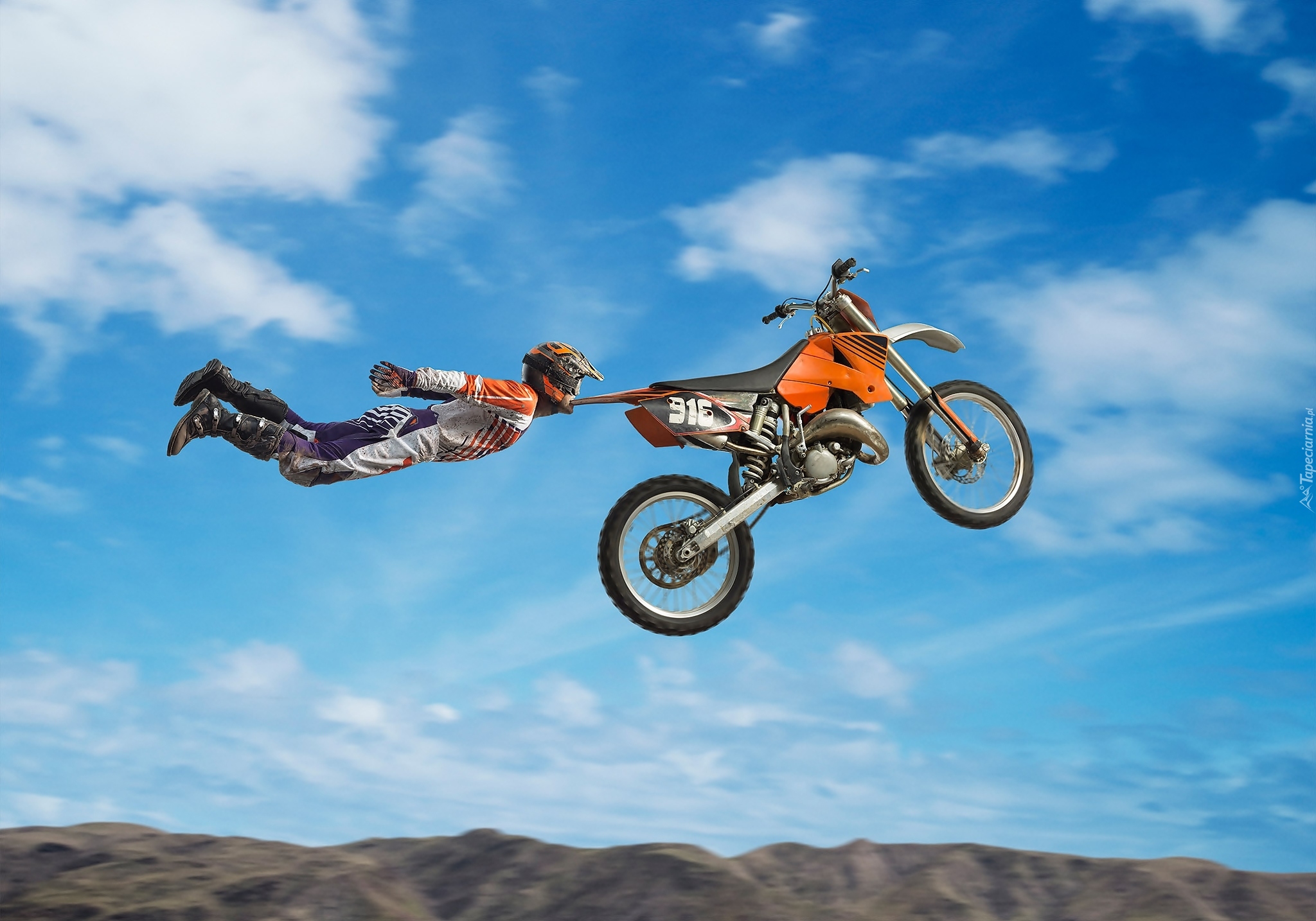 Edytor tapety: Popis motocyklisty w powietrzu