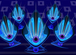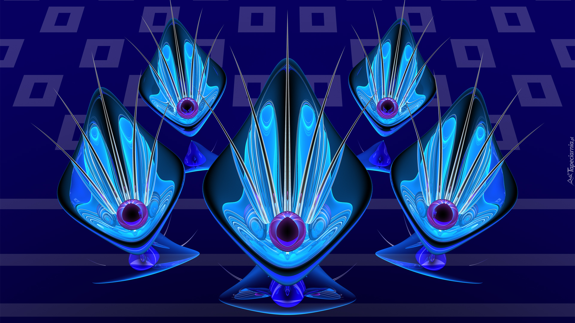 Edytor tapety: Rozświetlone niebieskie obiekty w grafice wektorowej 3D
