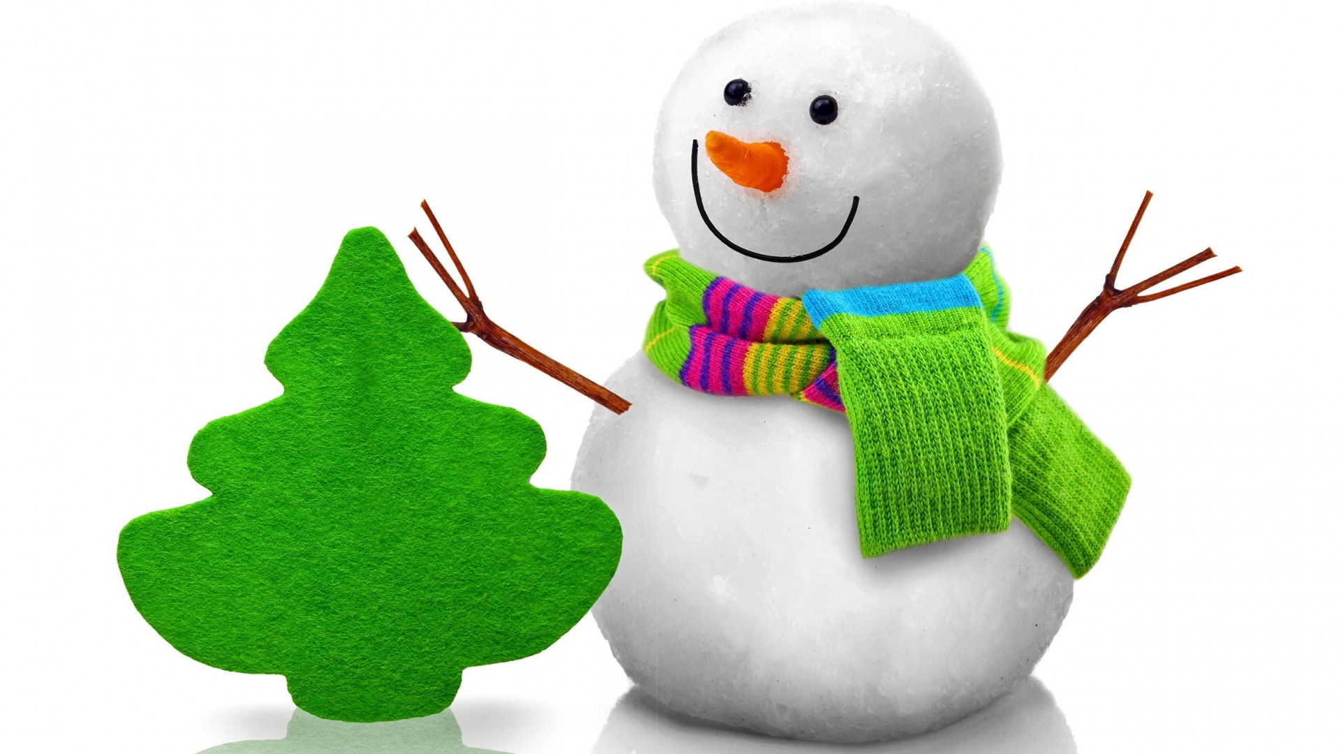 Edytor tapety: Bałwanek w szaliku obok zielonej choinki