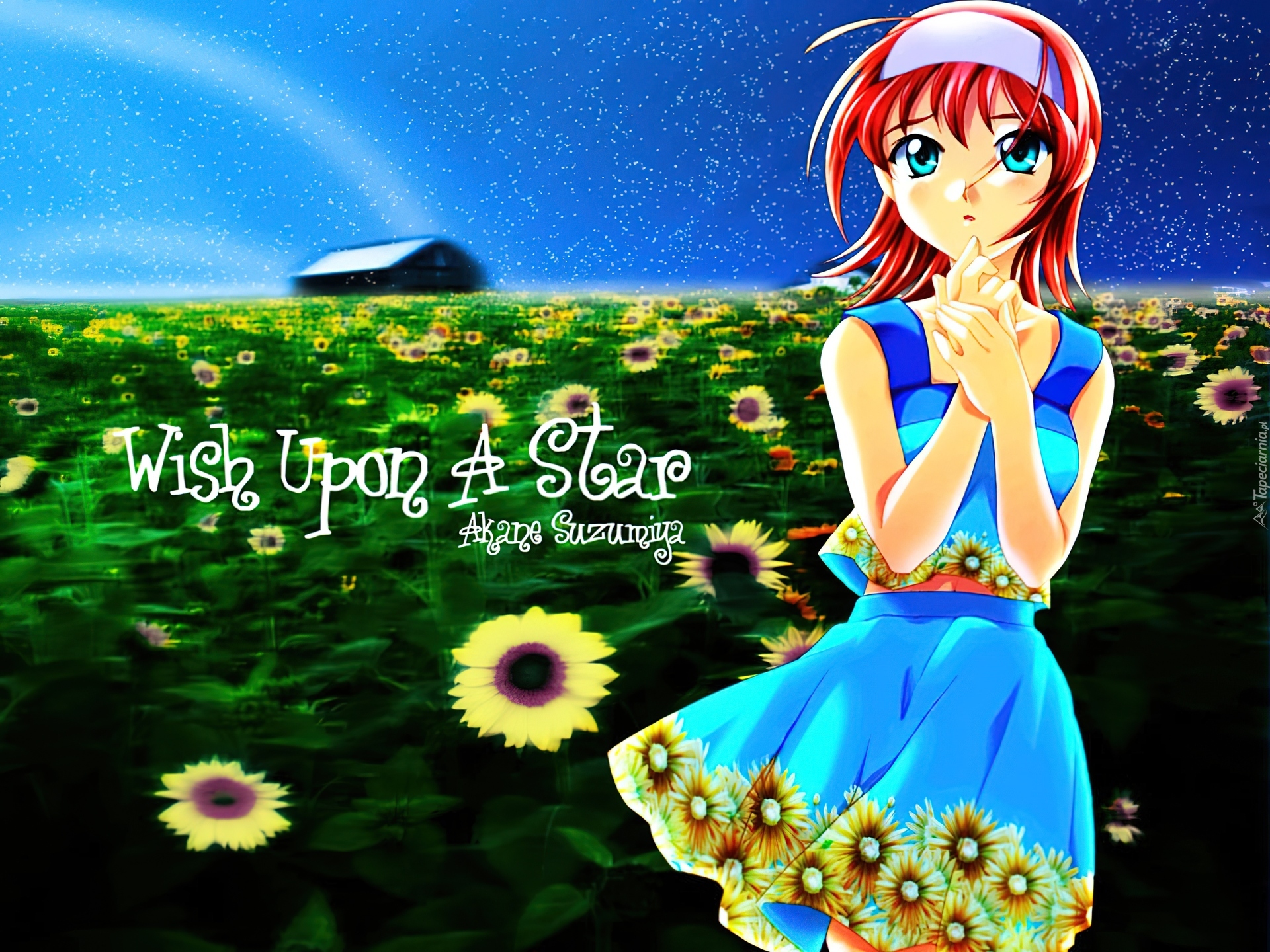 Edytor tapety: Kimi Ga Nozmu Eien, domek, tęcza, kobieta, łąka