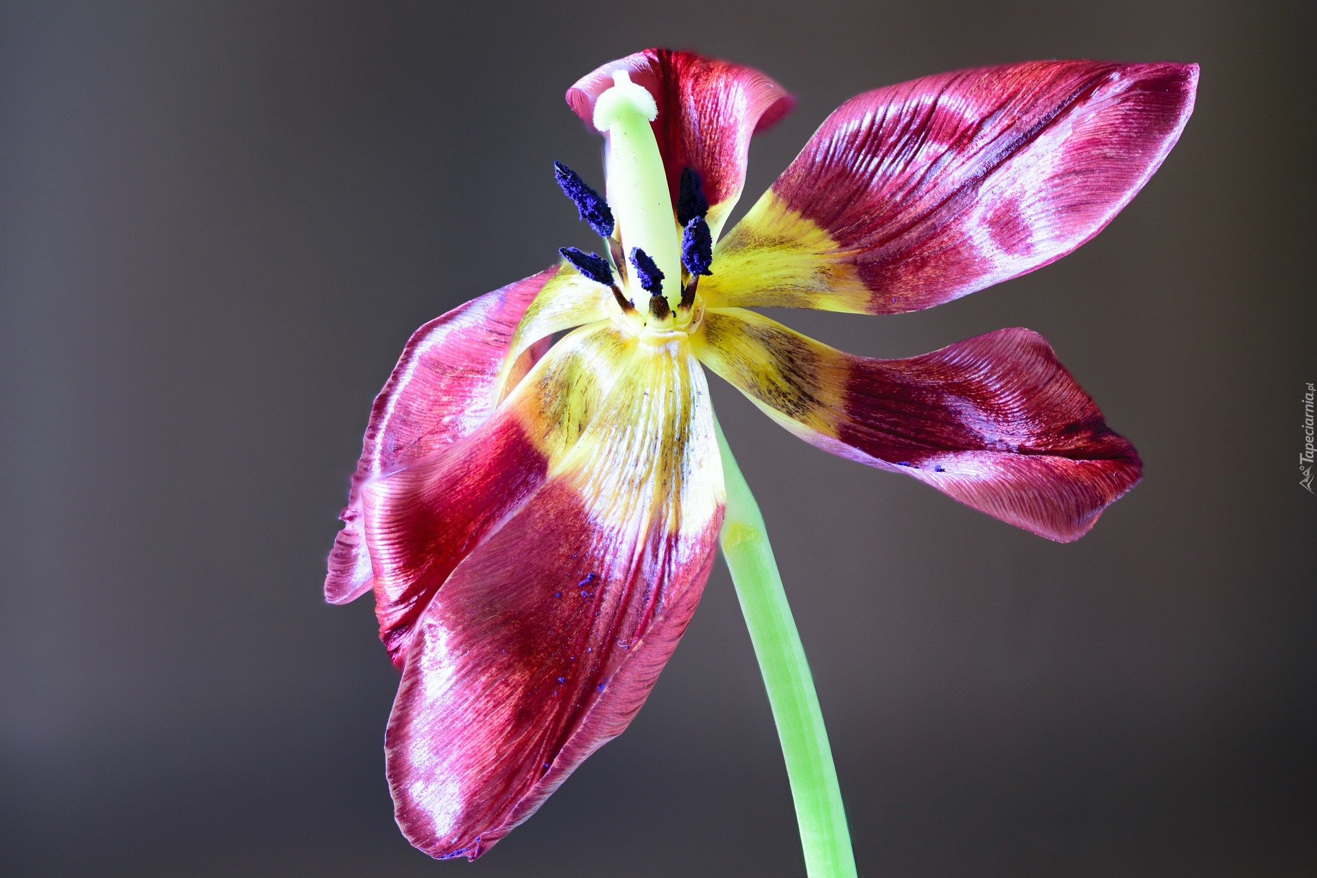 Edytor tapety: Przekwitający tulipan z widocznymi pręcikami