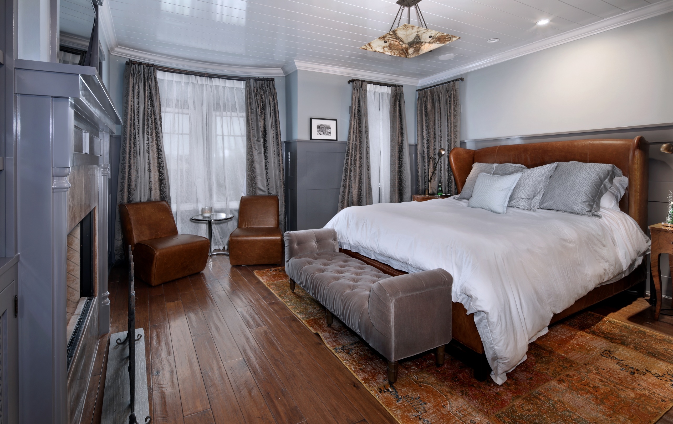 Edytor tapety: Wnętrze sypialni z fotelami stojącymi przy oknie