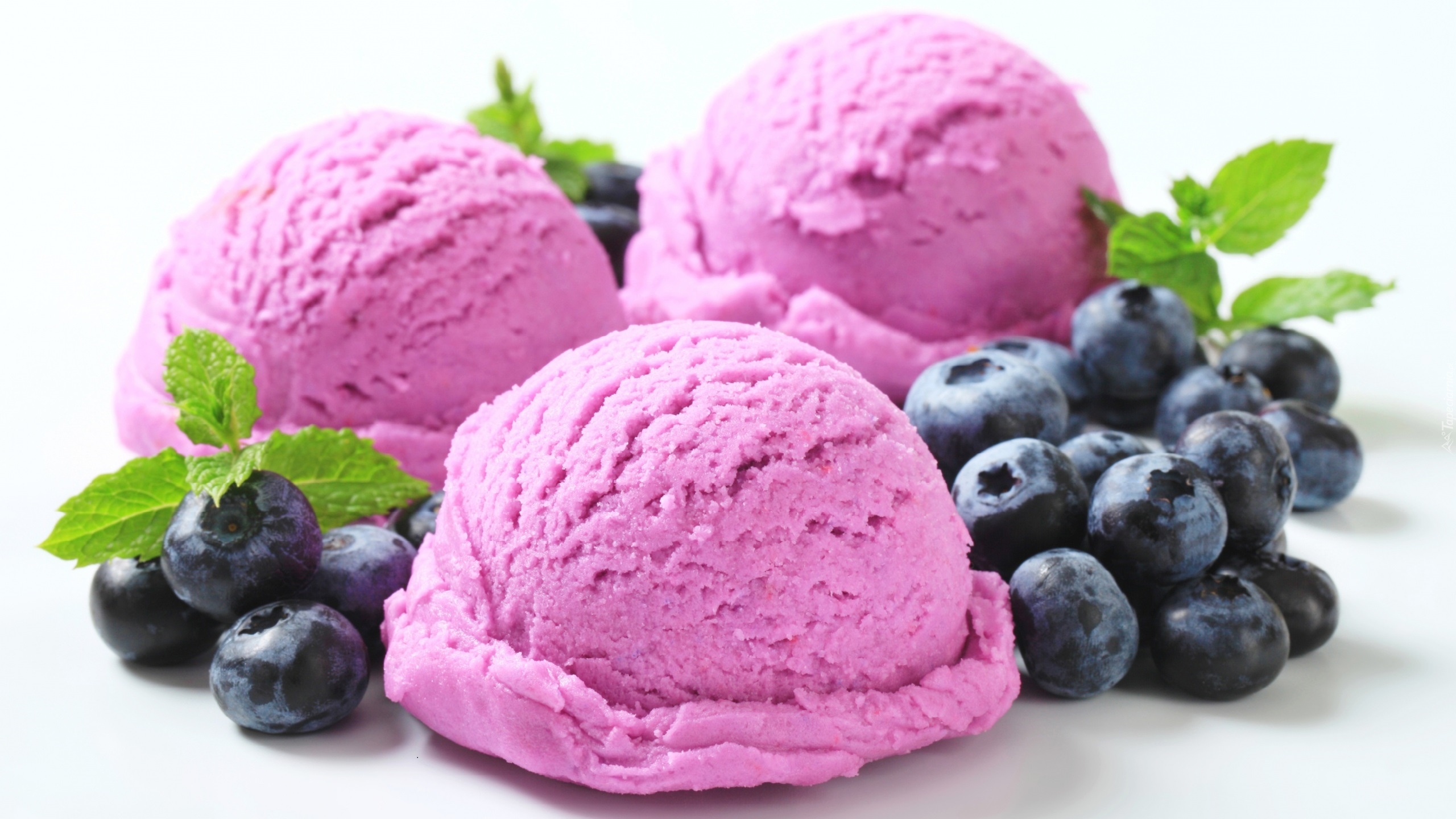 Edytor tapety: Trzy gałki owocowych lodów z borówkami