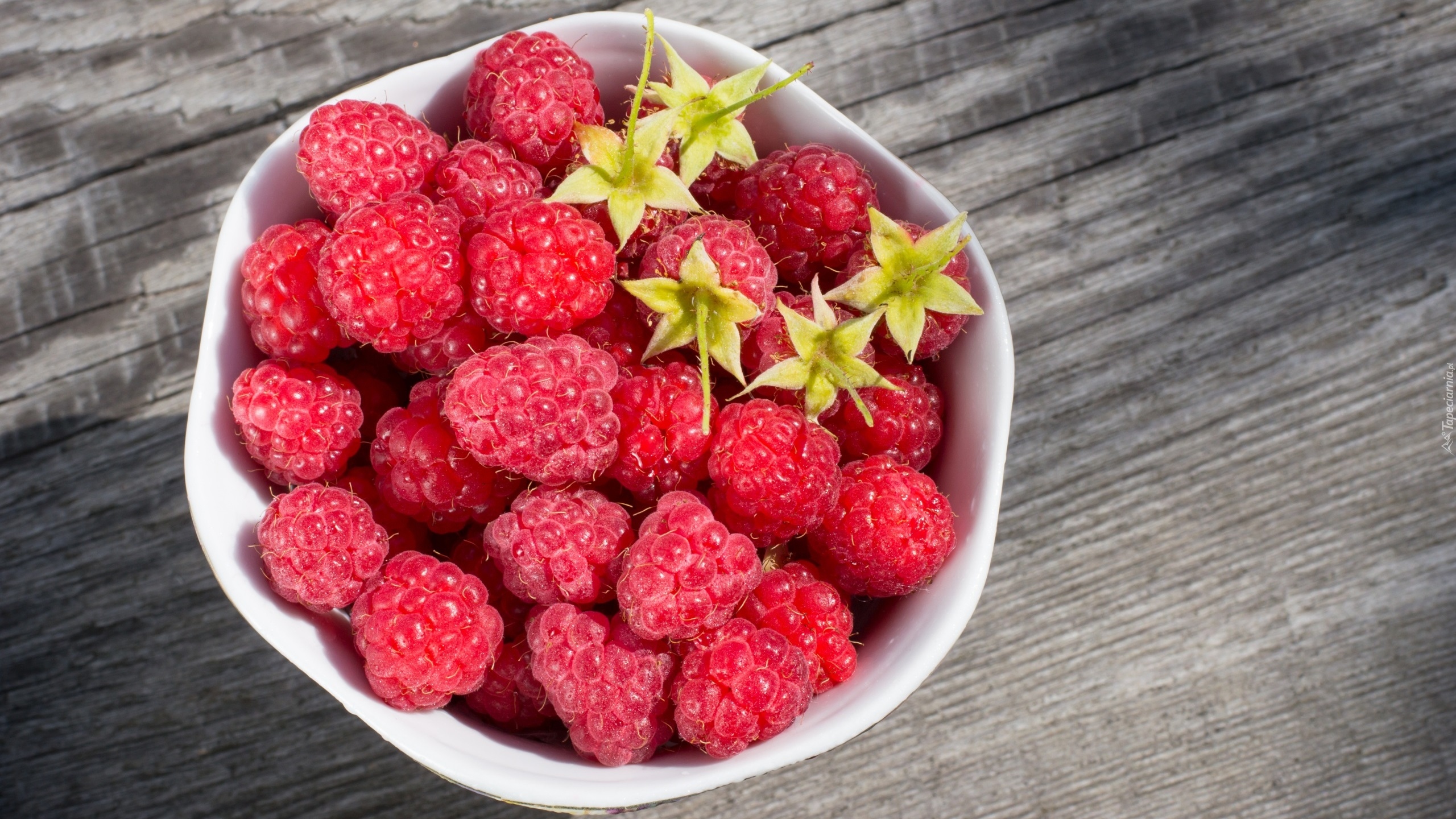 Edytor tapety: Miseczka z malinami na deskach