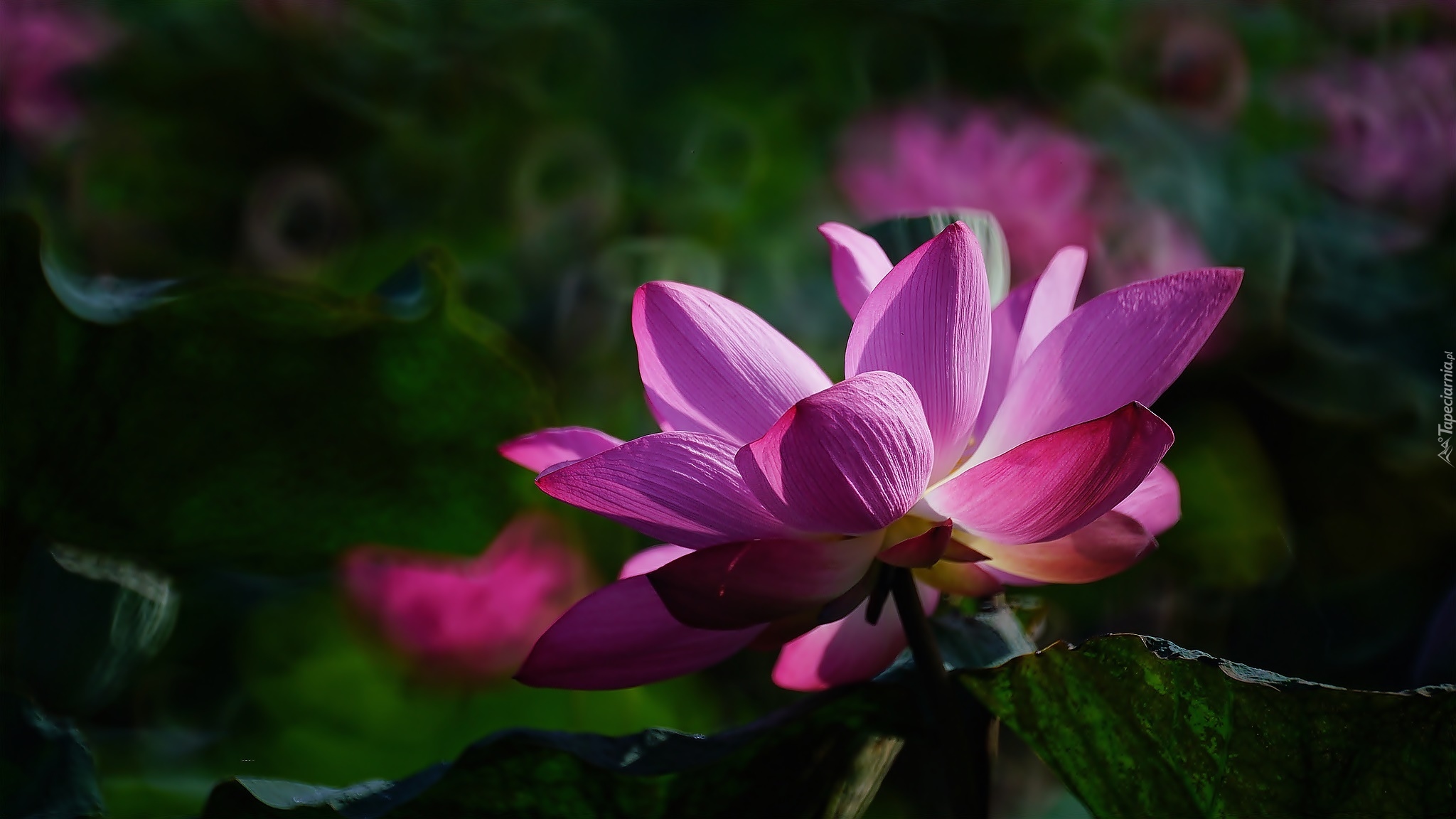 Edytor tapety: Różowy kwiat lotosu z liściem