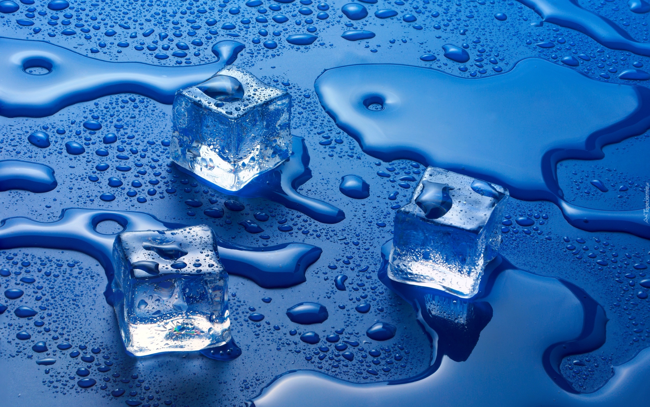 Edytor tapety: Topniejące kostki lodu na niebieskim blacie