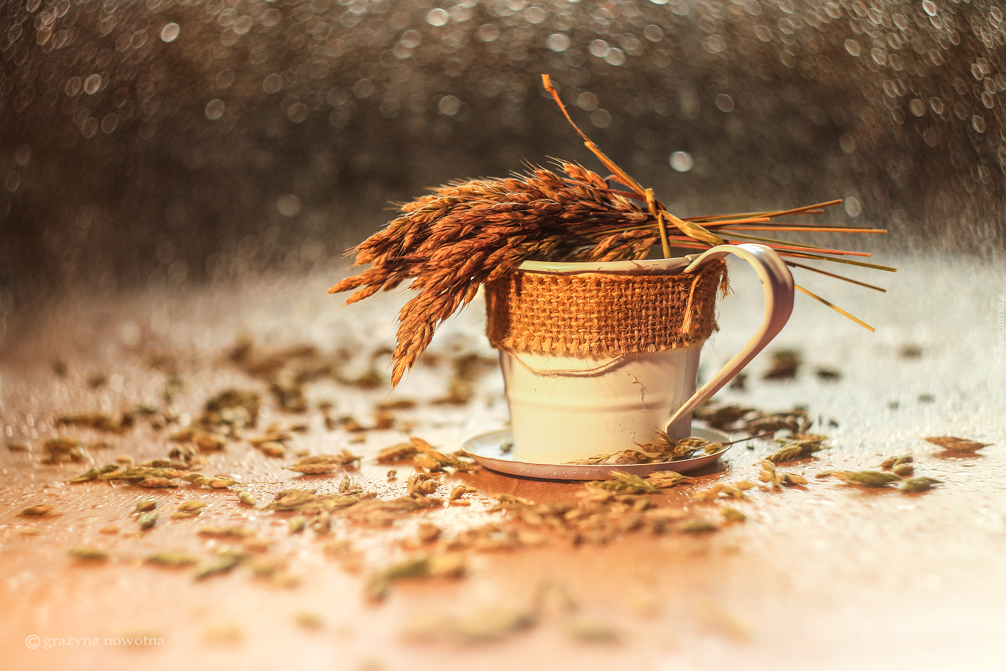 Edytor tapety: Źdźbła trawy położone na filiżance