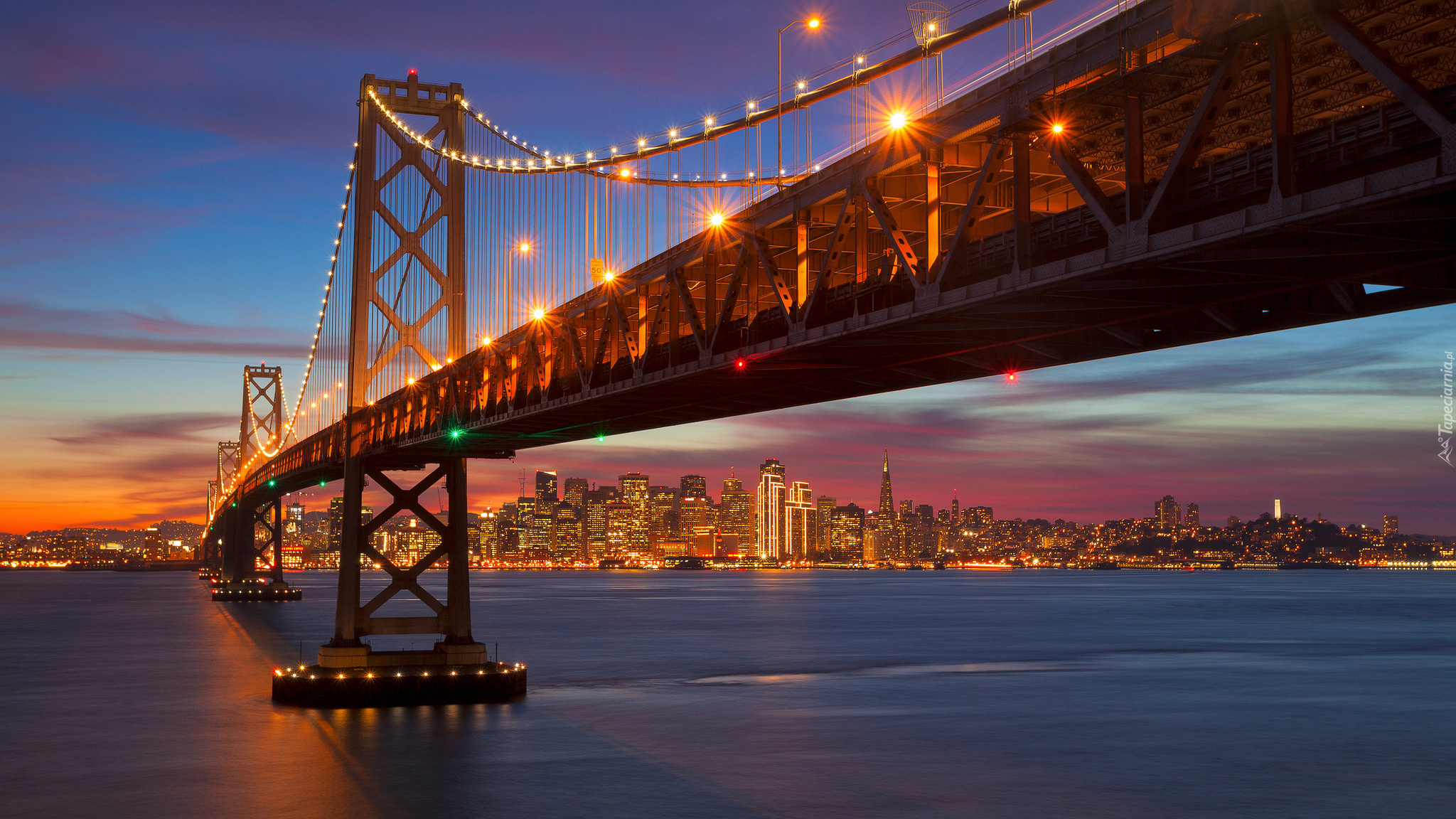 Edytor tapety: Most San Francisco-Oakland Bay o zachodzie słońca