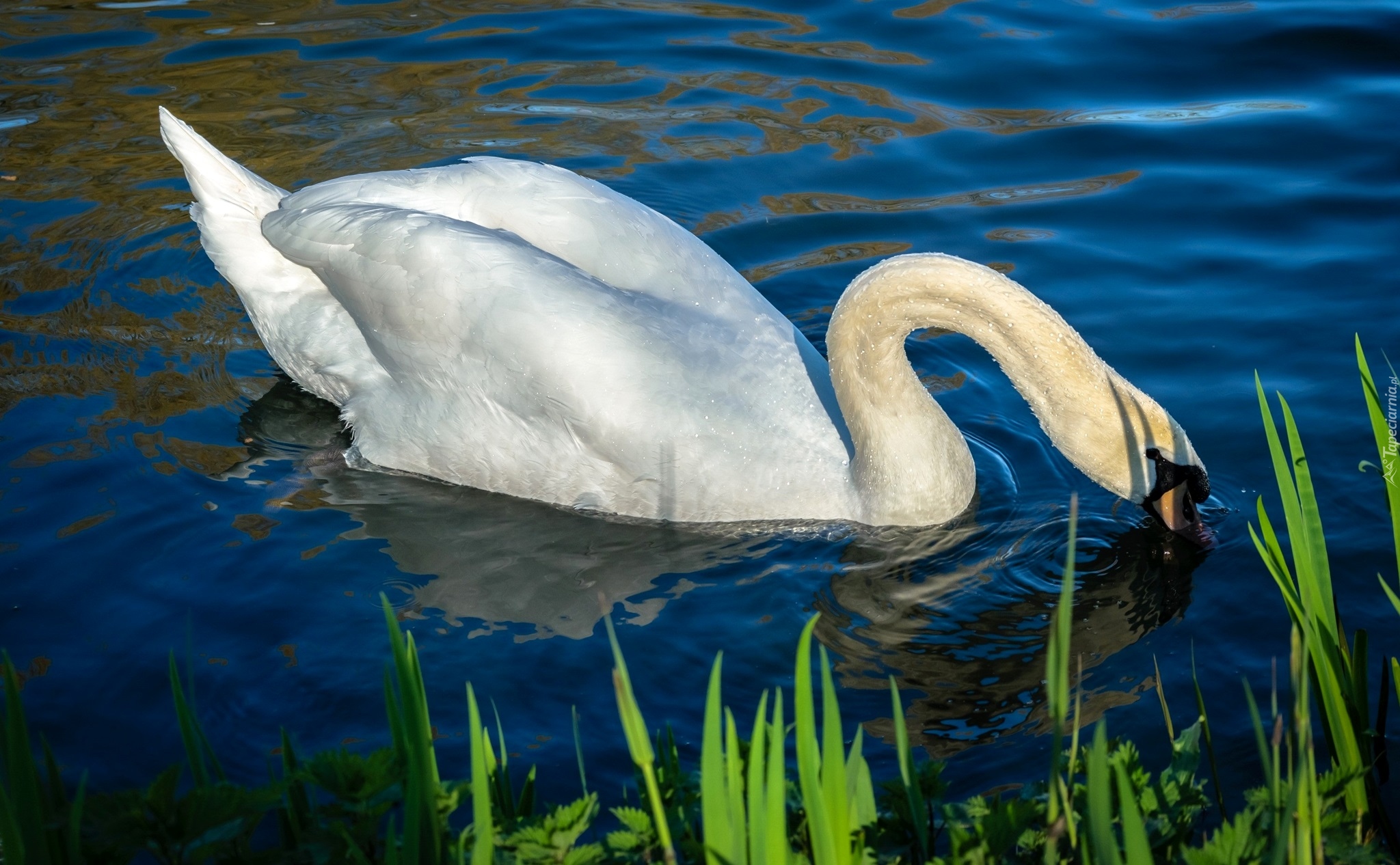 Edytor tapety: Łabędź szukający pożywienia