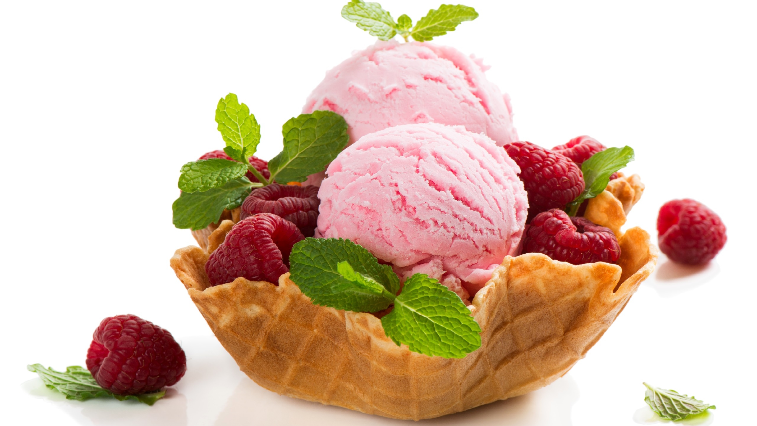 Edytor tapety: Owocowe lody z malinami w wafelku