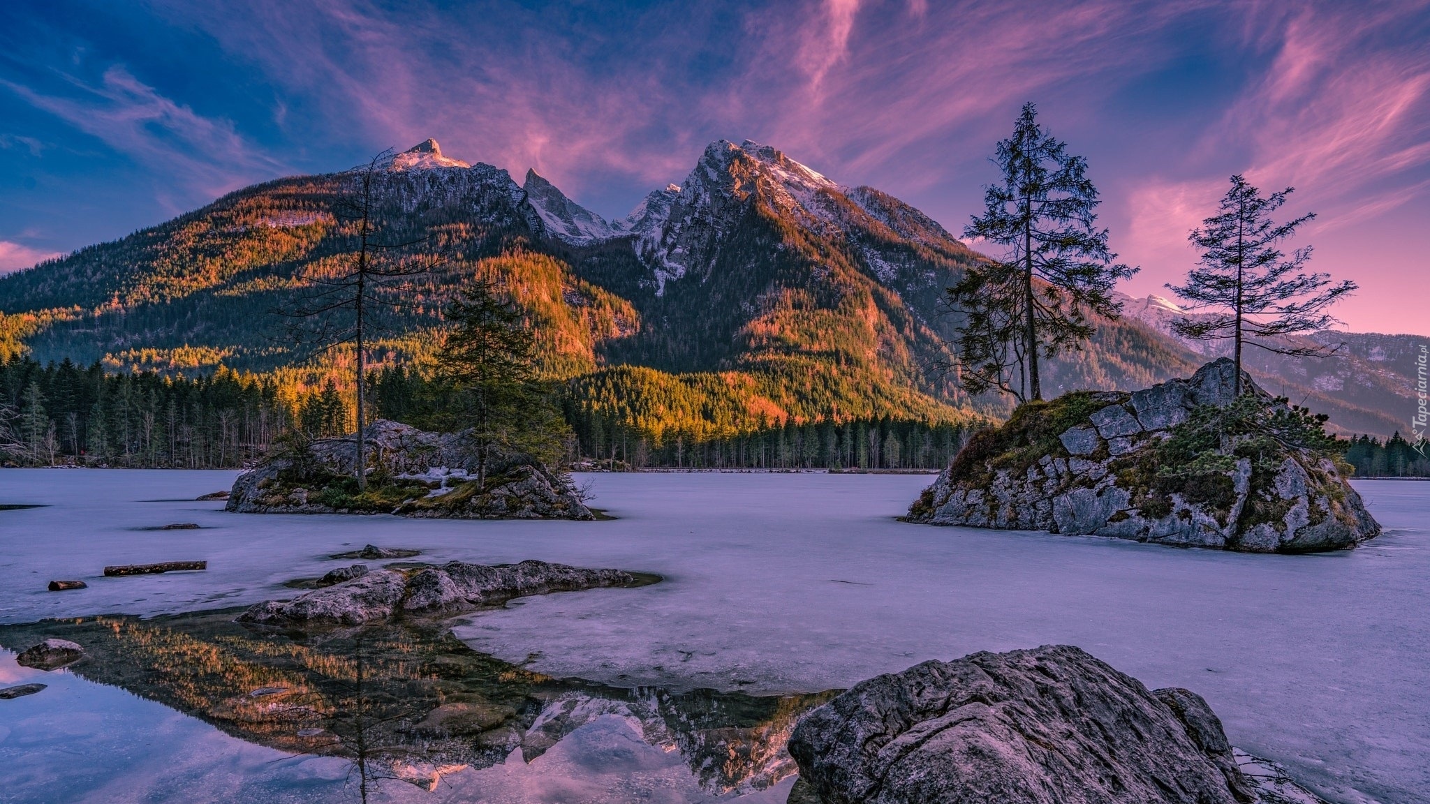 Edytor tapety: Zamarznięte jezioro Hintersee w Bawarii