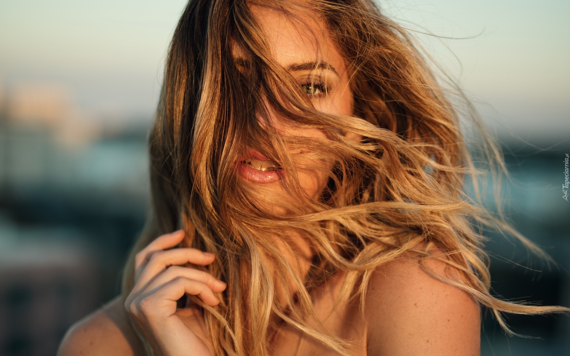 Edytor tapety: Dziewczyna z rozwianymi włosami