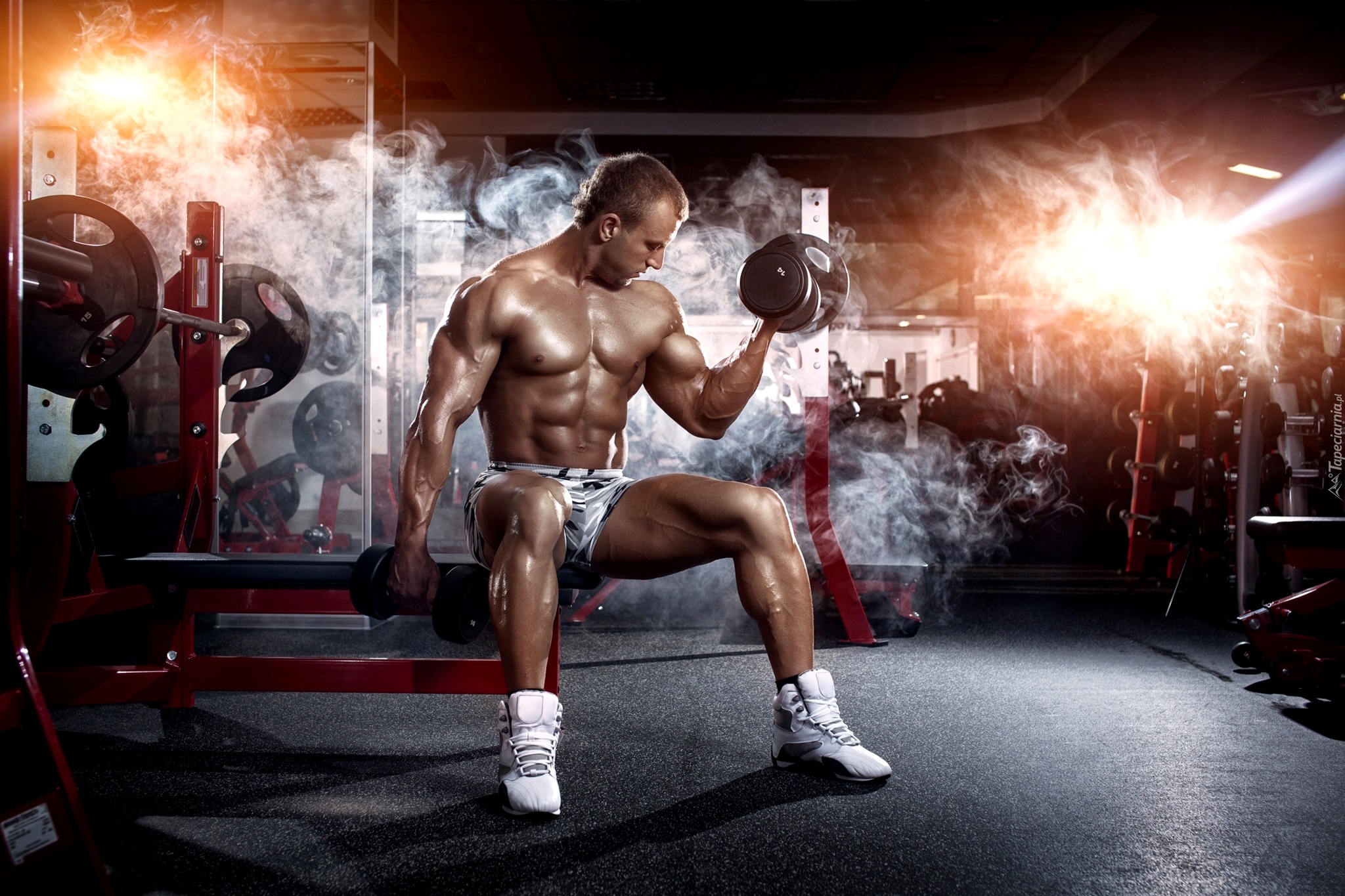 Edytor tapety: Mężczyzna podczas treningu na siłowni