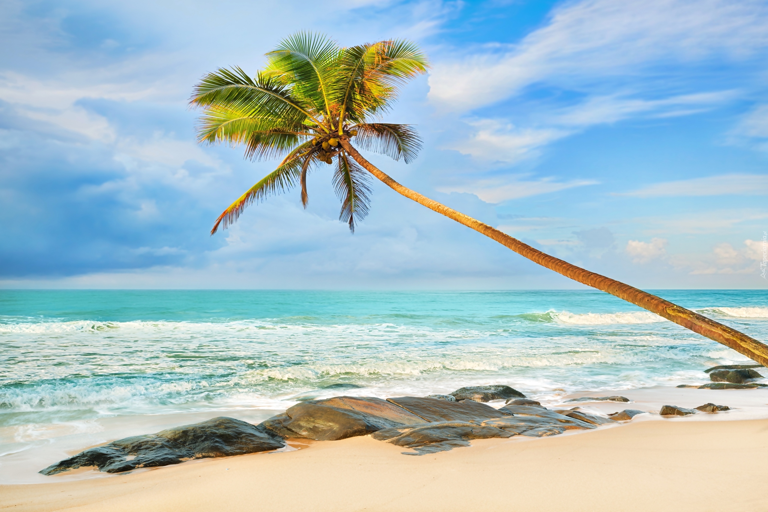 Edytor tapety: Samotna palma pochylona nad morską plażą
