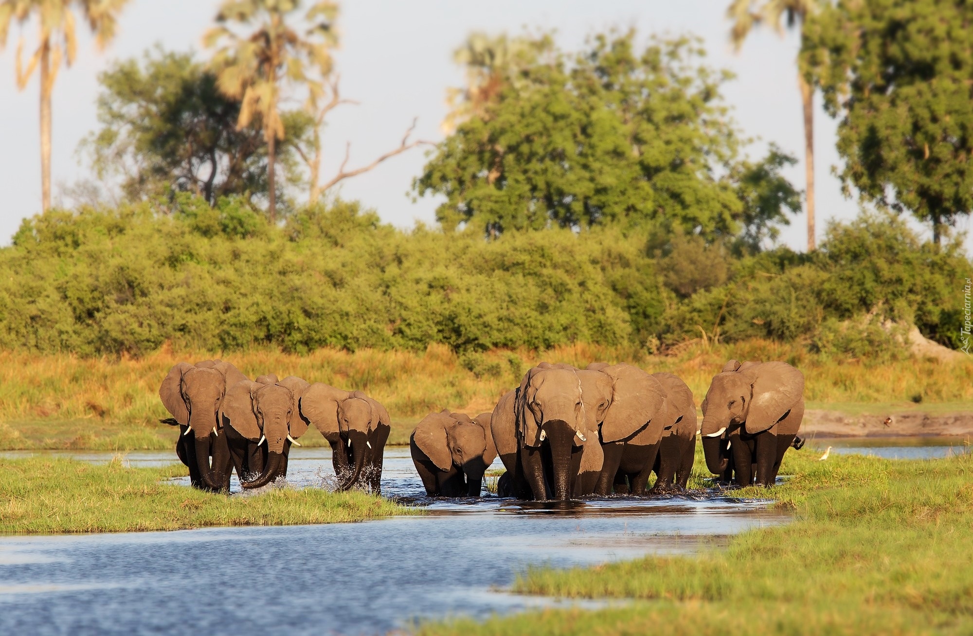 Edytor tapety: Stado słoni przy wodopoju
