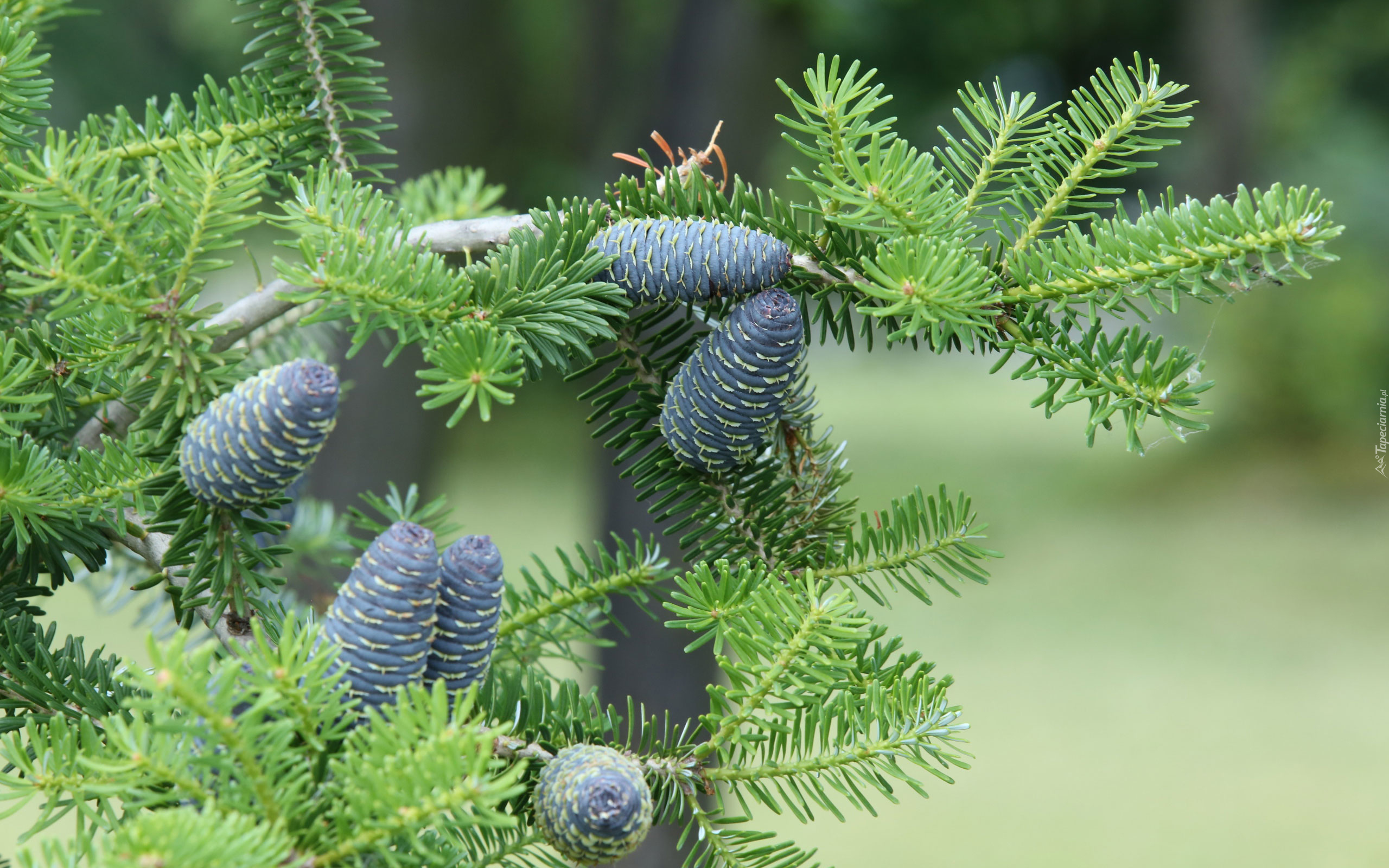 Edytor tapety: Gałązki jodły koreańskiej z szyszkami