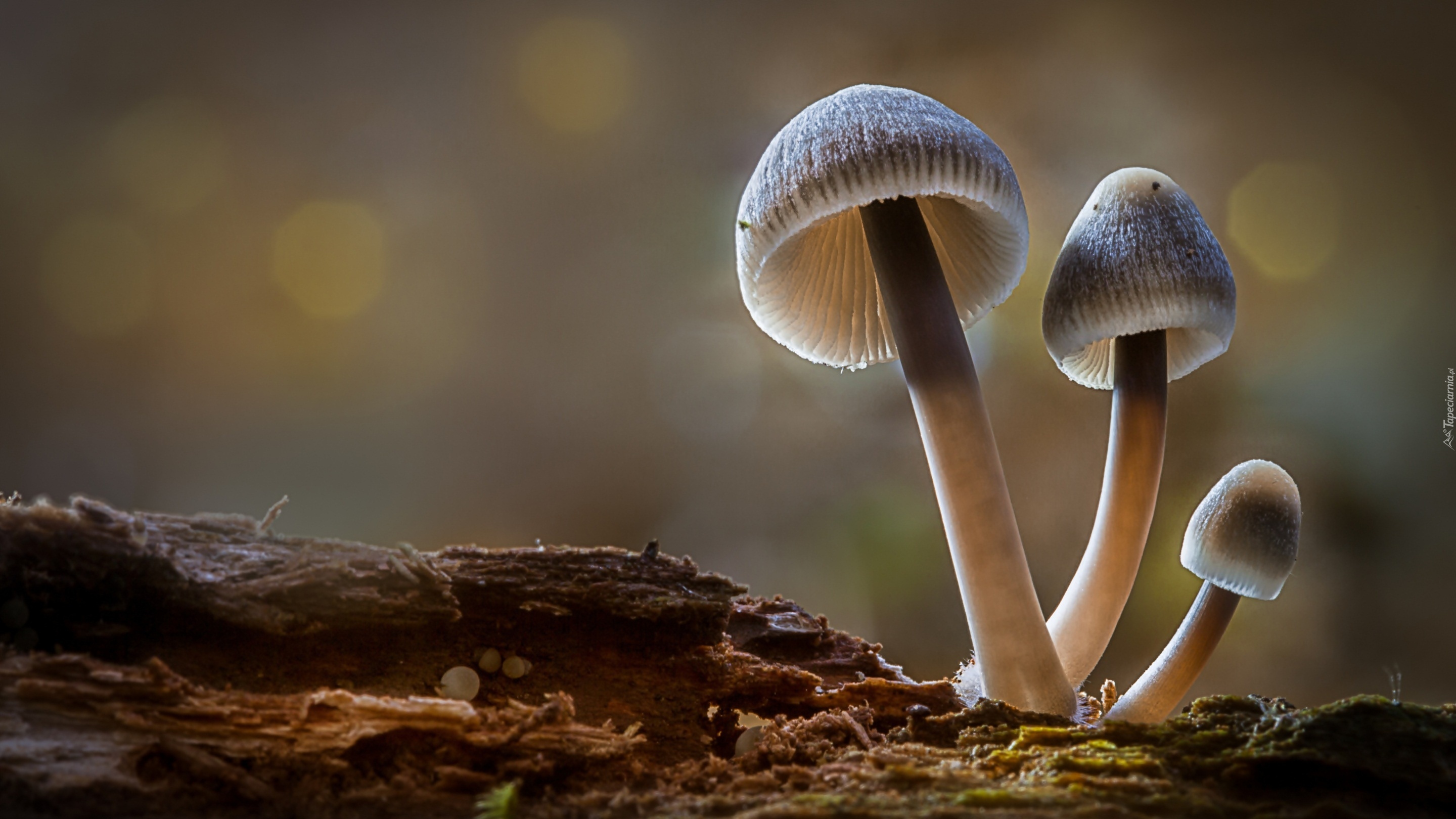 Edytor tapety: Trzy grzyby wyrastające spod mchu