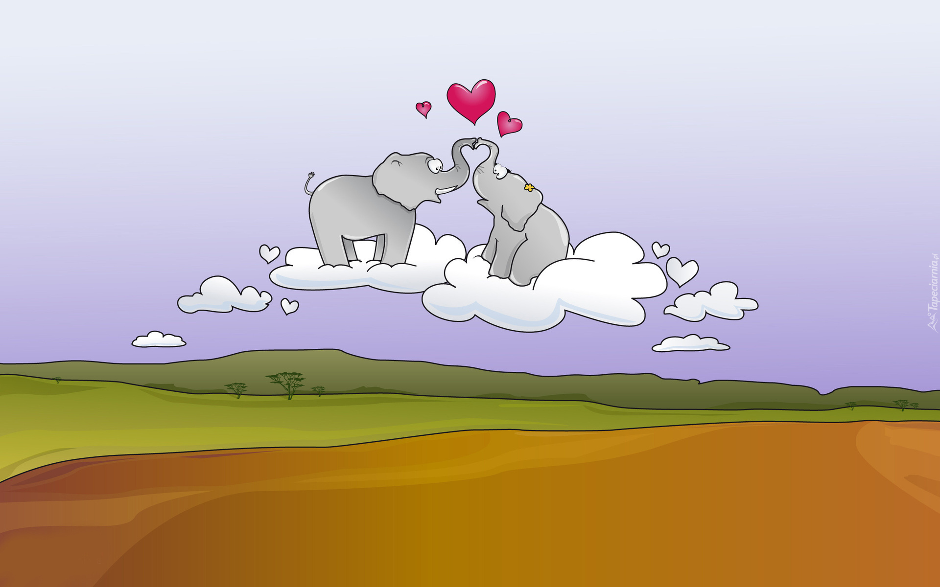 Edytor tapety: Dwa zakochane słoniki na chmurkach
