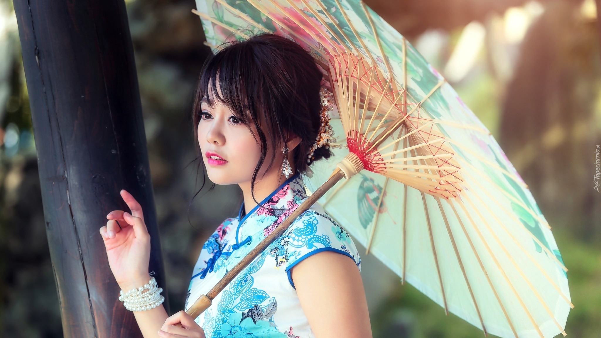 Edytor tapety: Dziewczyna o azjatyckich rysach z parasolką