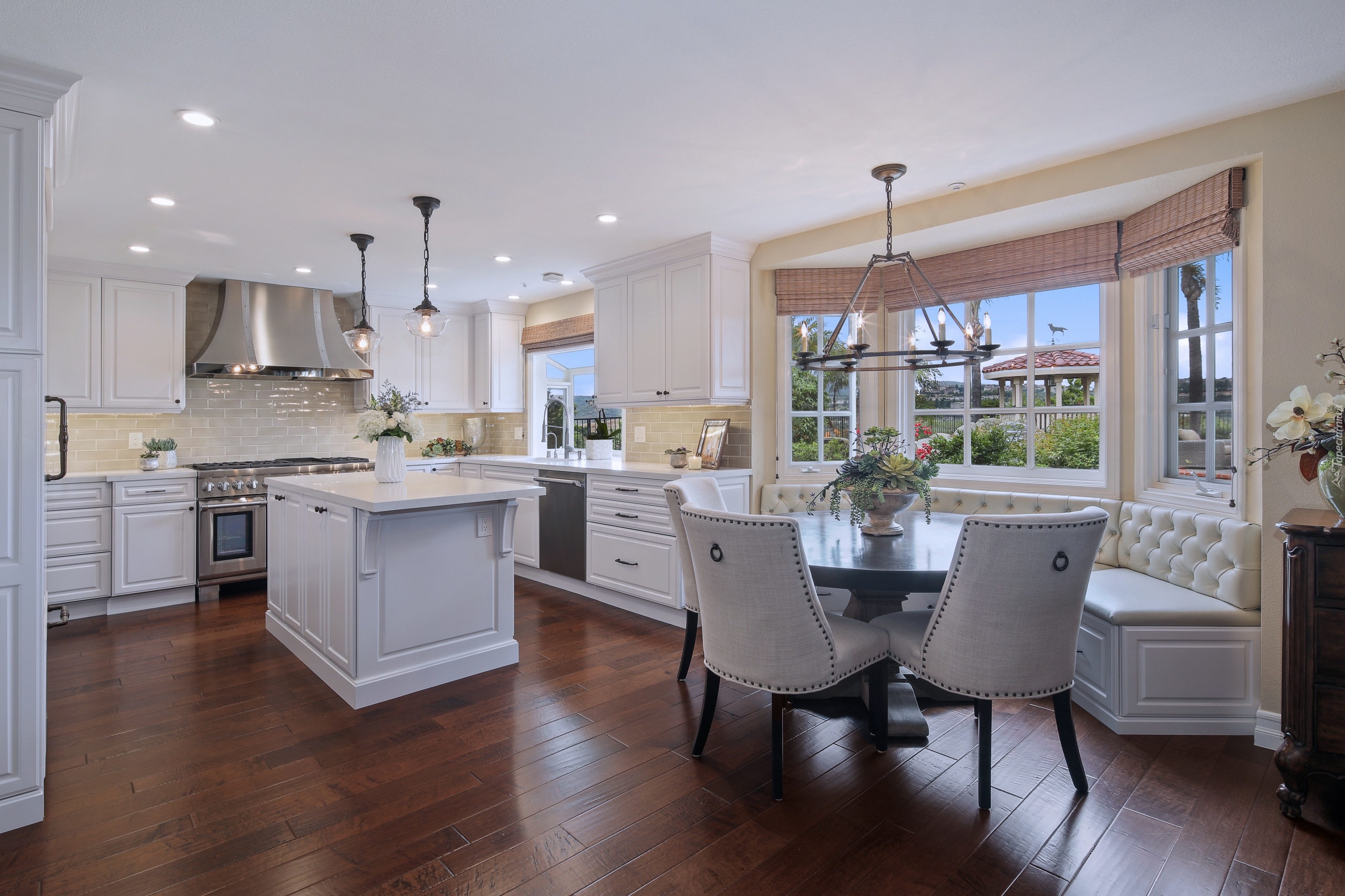 Edytor tapety: Wnętrze jasnej kuchni z jadalnią przy oknie