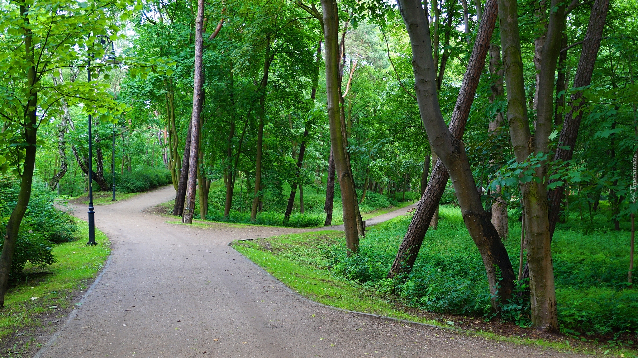 Edytor tapety: Drzewa przy parkowych alejkach