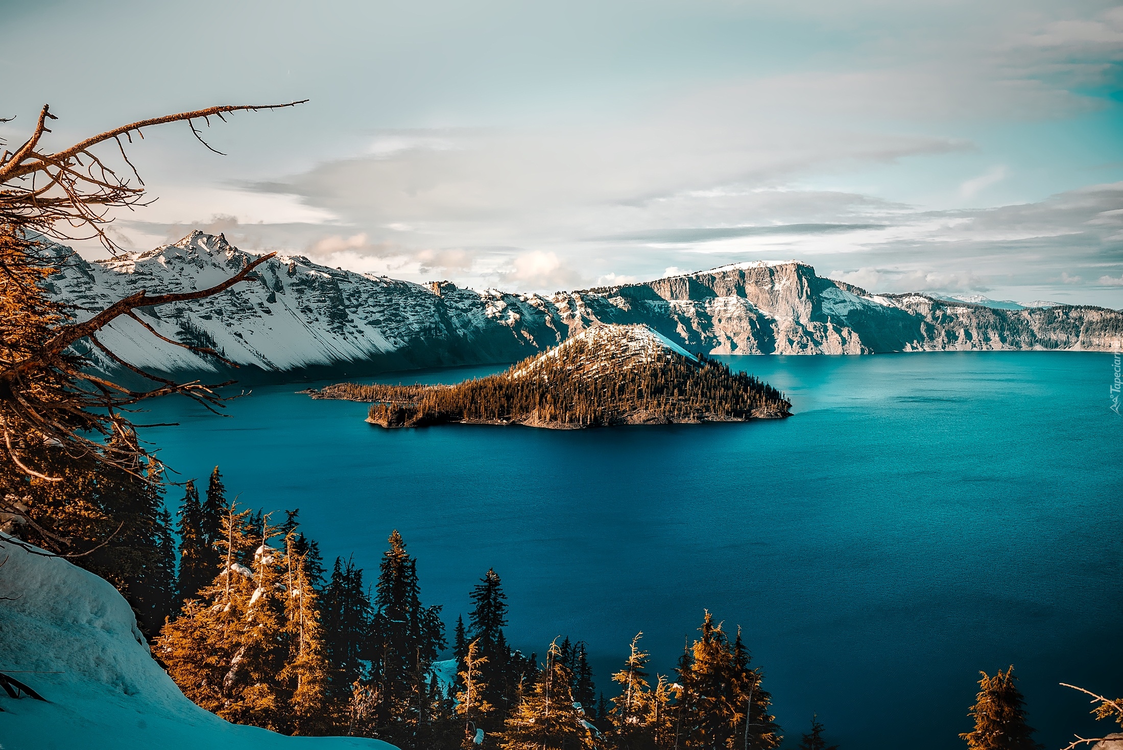 Edytor tapety: Wyspa Czarodzieja i Jezioro Kraterowe w stanie Oregon