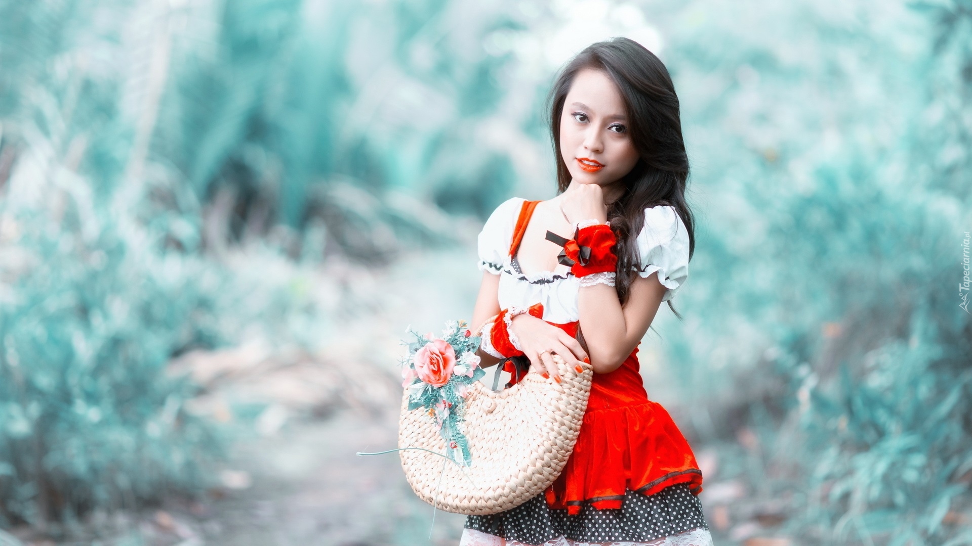 Edytor tapety: Ciemnowłosa dziewczyna z koszyczkiem