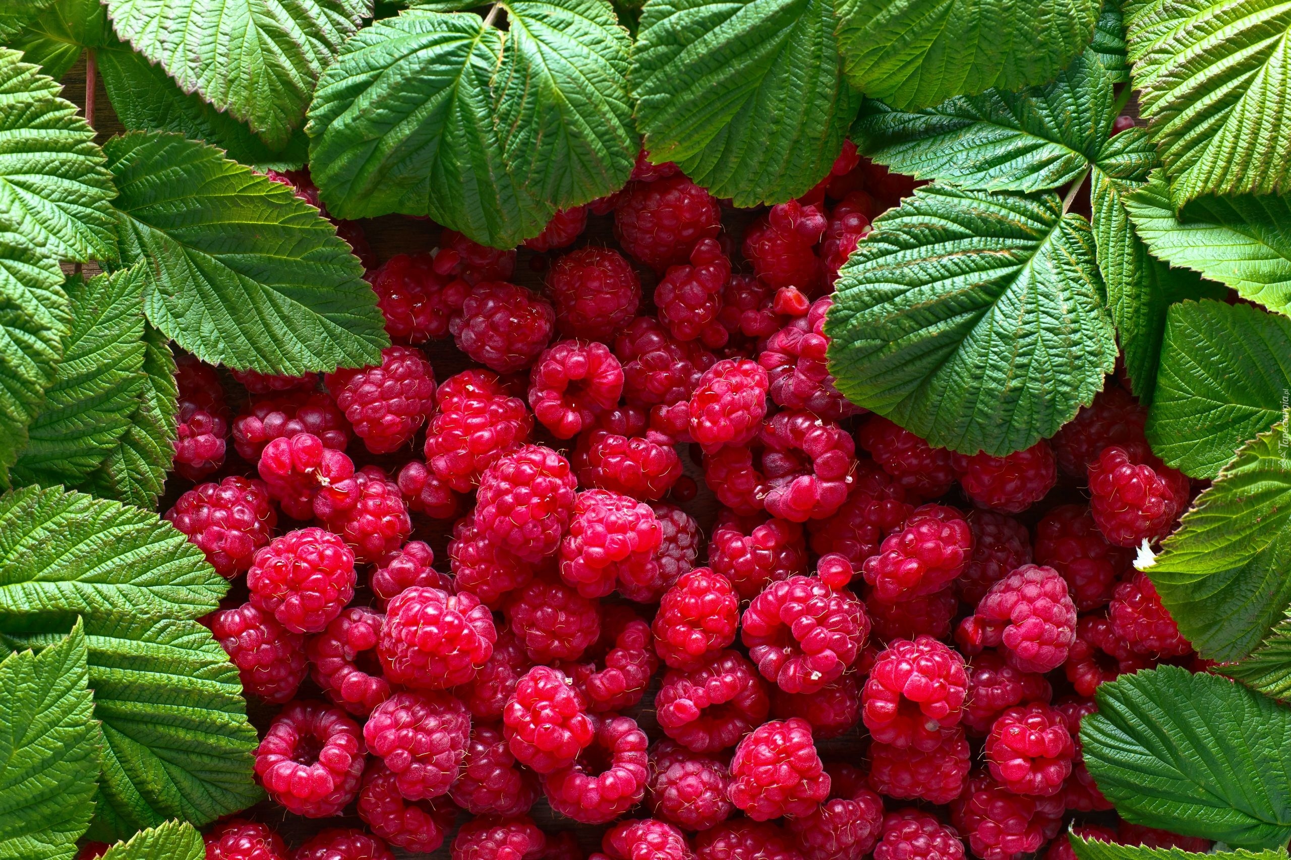 Edytor tapety: Maliny otoczone zielonymi liśćmi