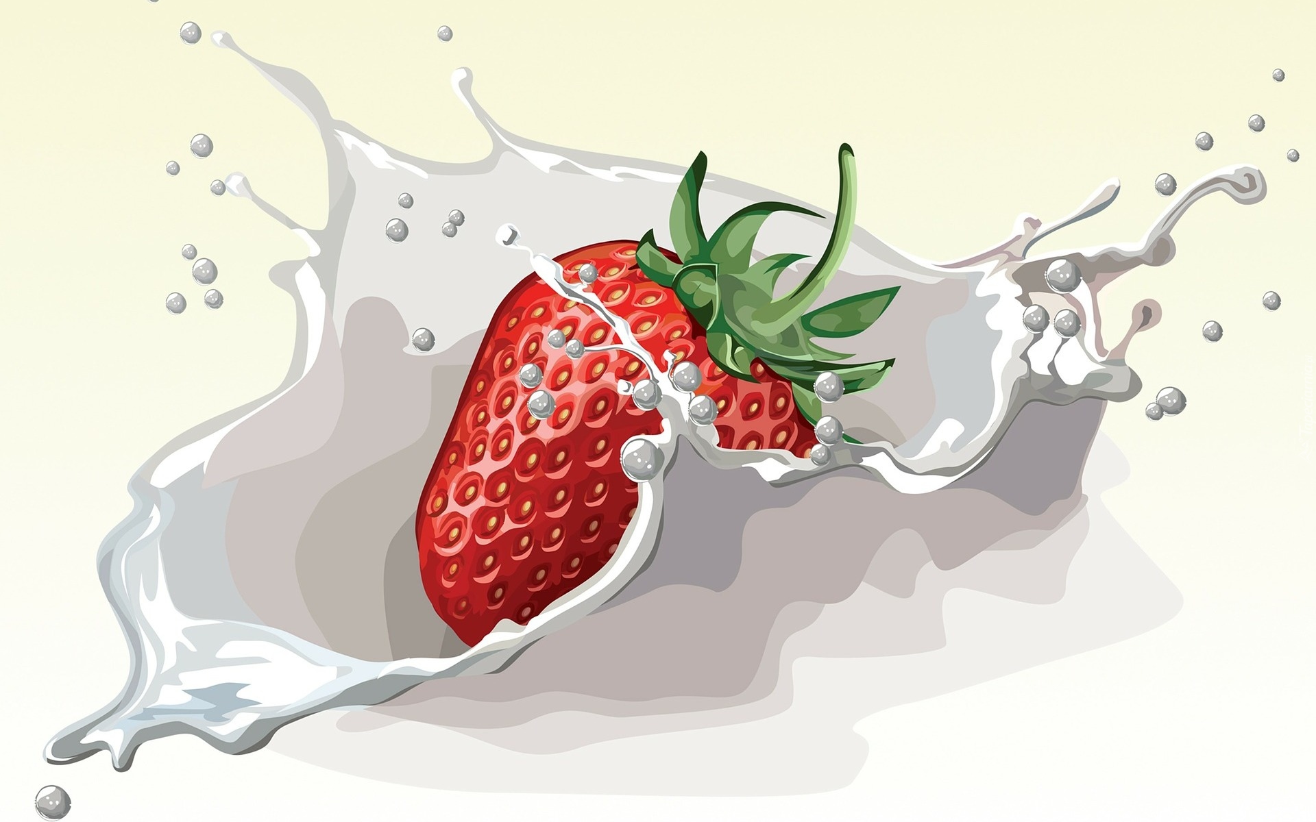 Edytor tapety: Truskawka rozbyzgująca mleko w grafice 2D