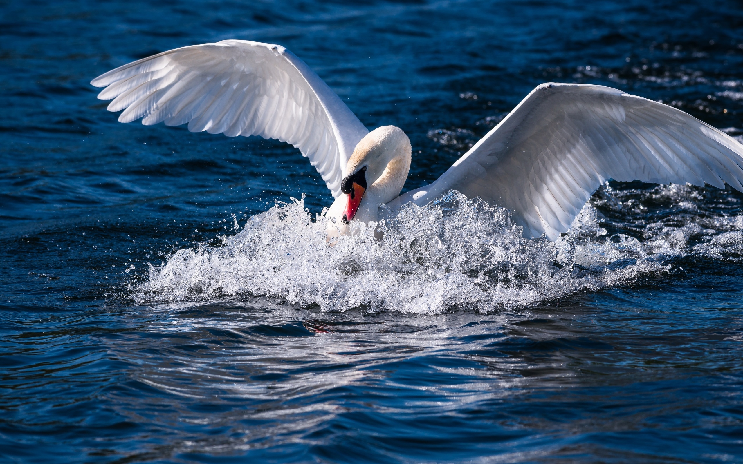 Edytor tapety: Łabędź z rozpostartymi skrzydłami w wodzie