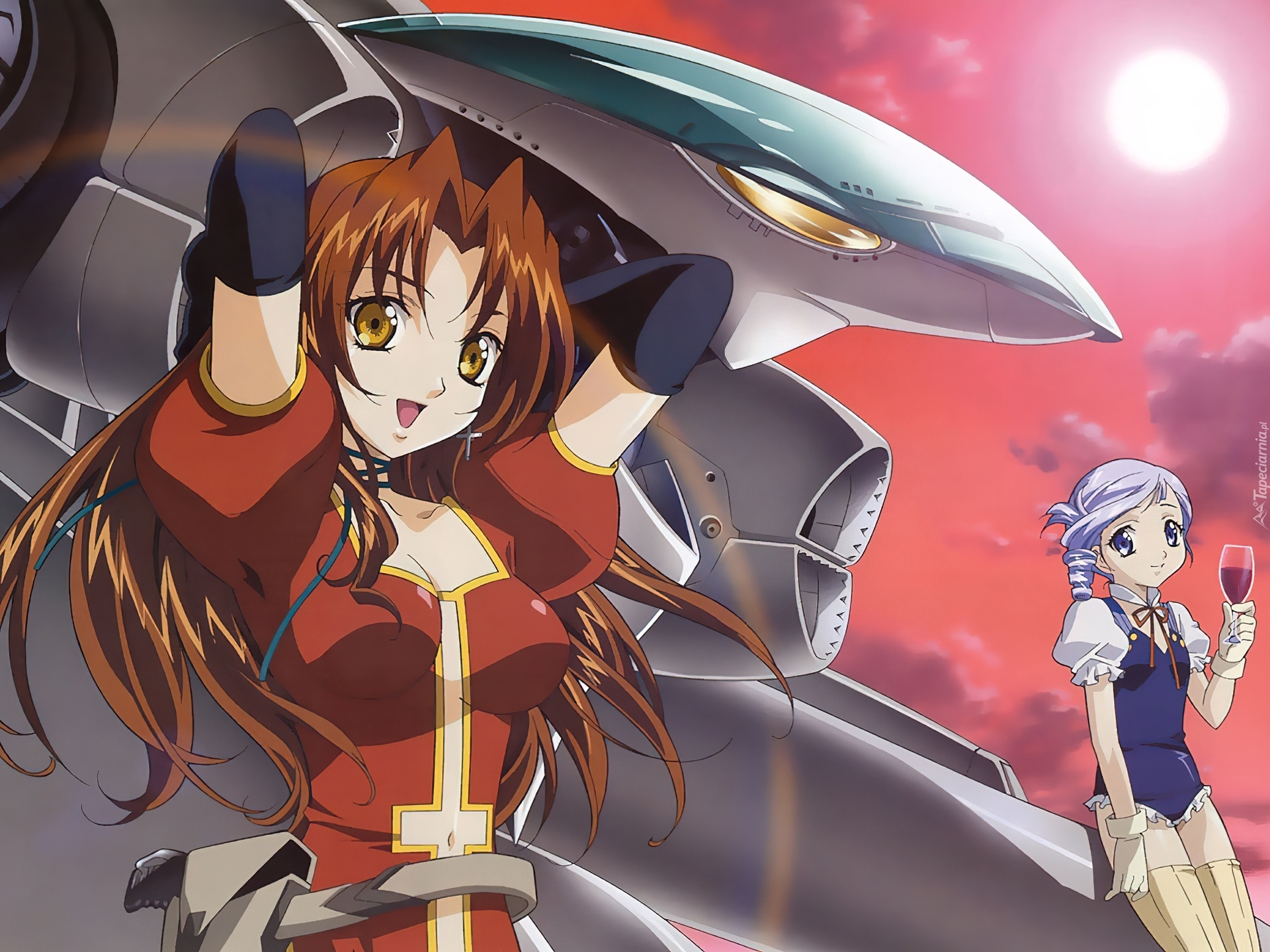 Edytor tapety: Kiddy Grade, kobiety, kieliszek, pojazd