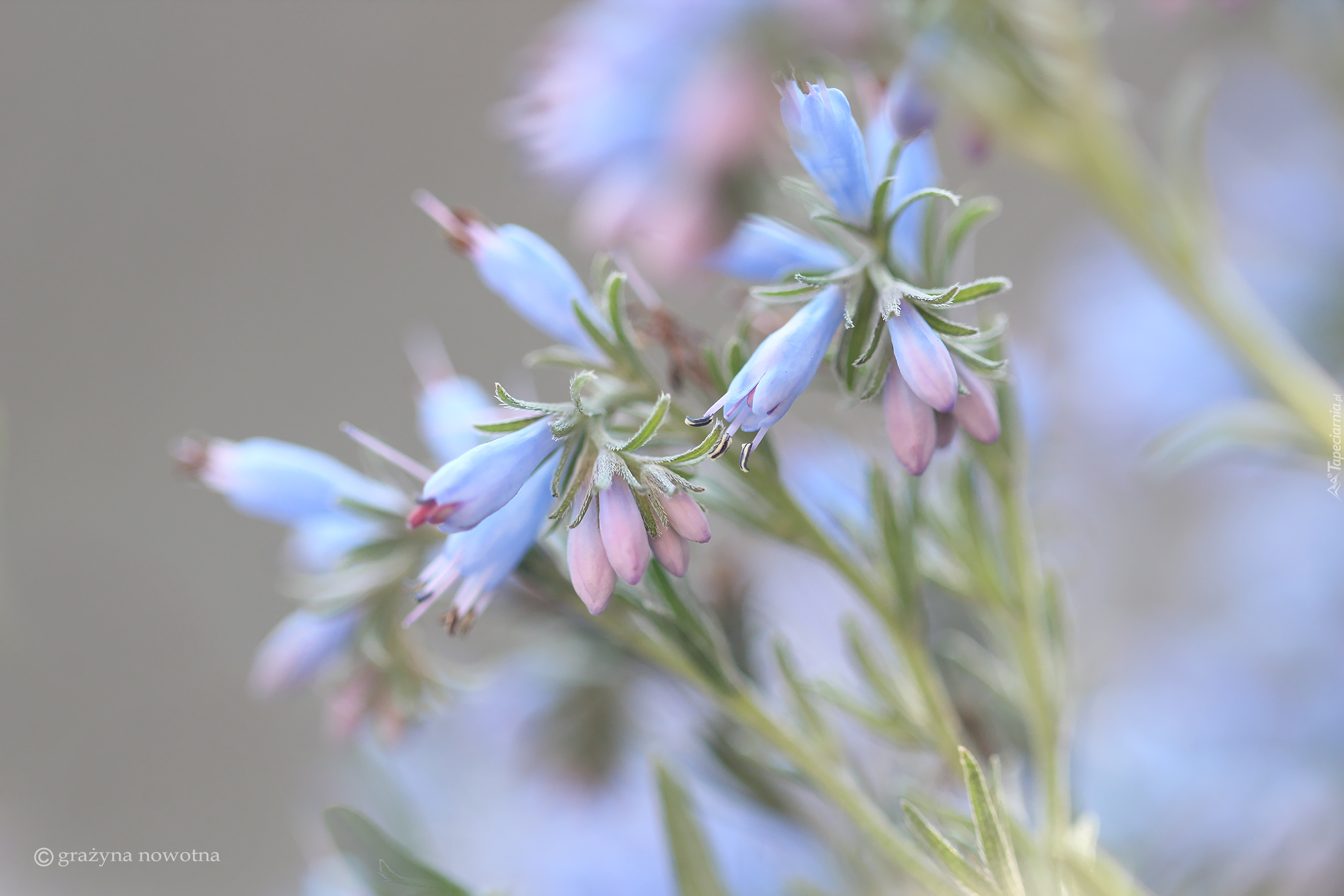 Edytor tapety: Różowo-niebieskie kwiaty w rozmyciu