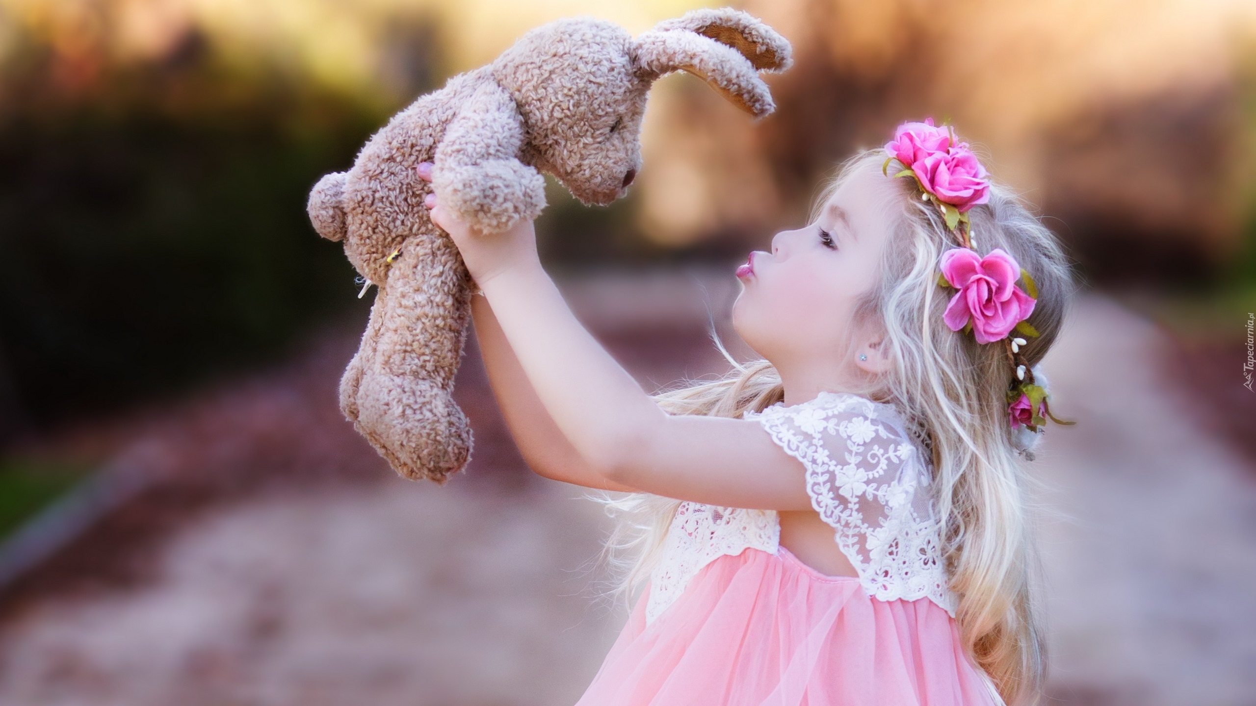Edytor tapety: Dziewczynka posyła buziaka pluszowemu króliczkowi