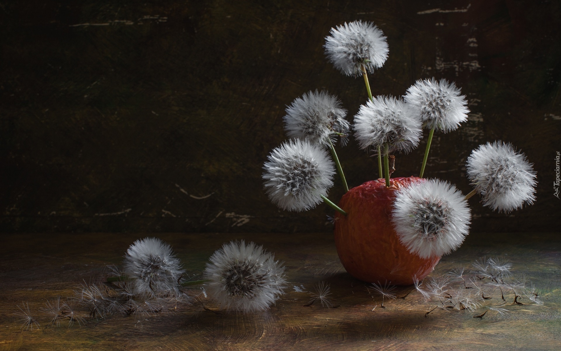 Edytor tapety: Dmuchawce wbite w jabłko