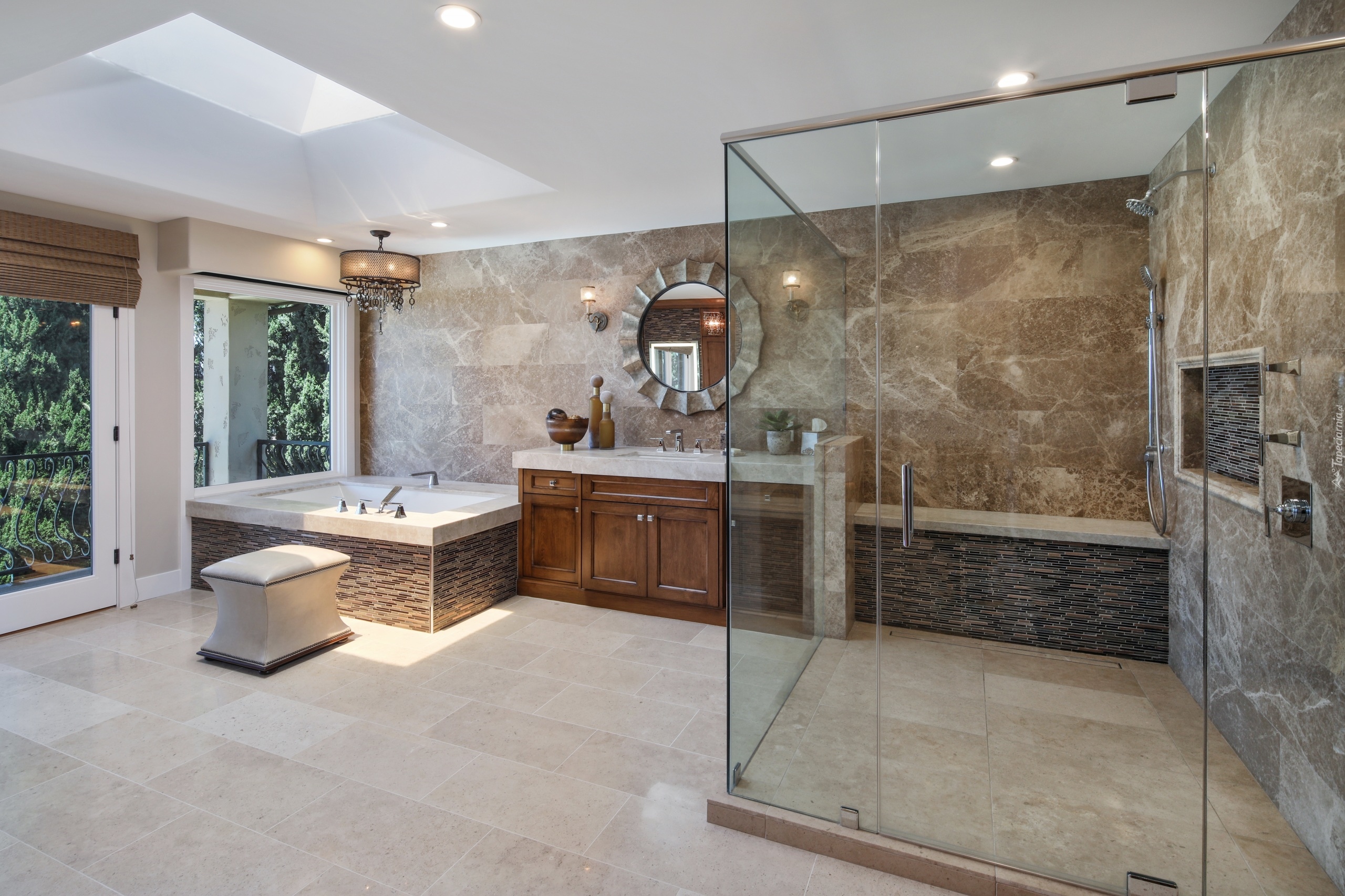 Edytor tapety: Wnętrze łazienki z dużą kabiną prysznicową