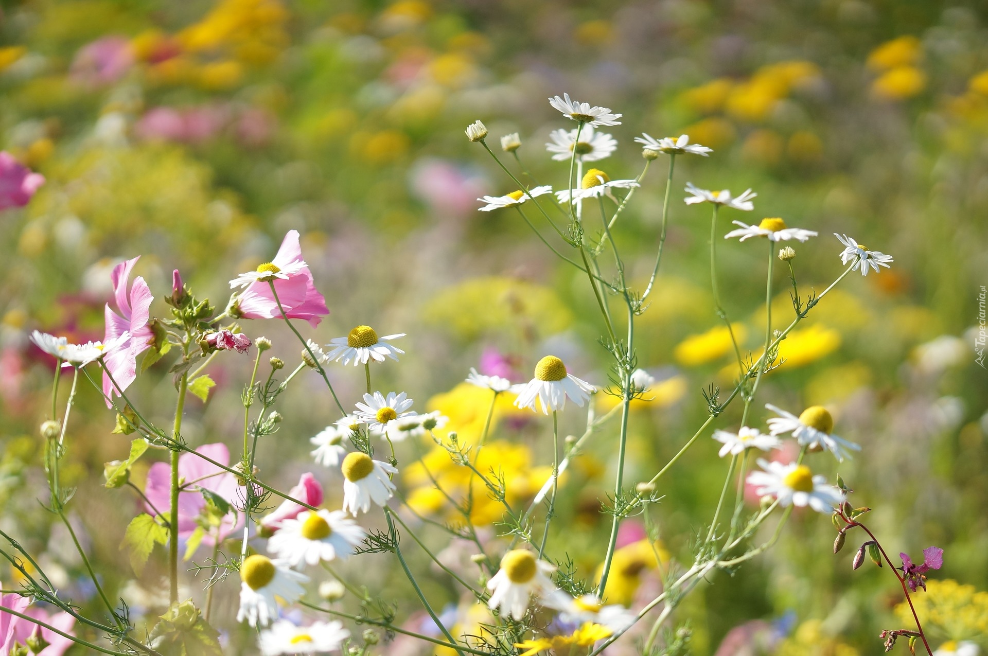 Edytor tapety: Rumianki na łące w słońcu