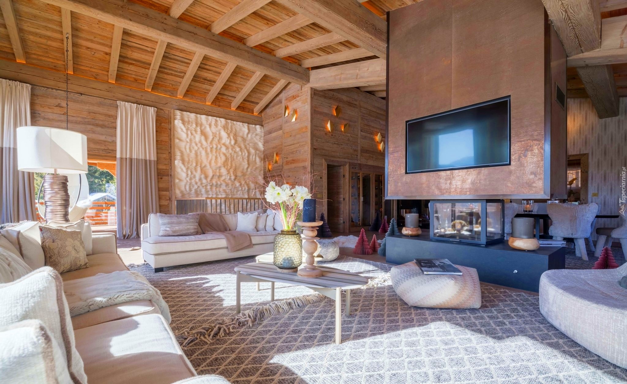 Edytor tapety: Rozświetlony przestronny salon z meblami