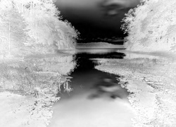 Edytor tapety: Słonce chowa się za las nad rzeką