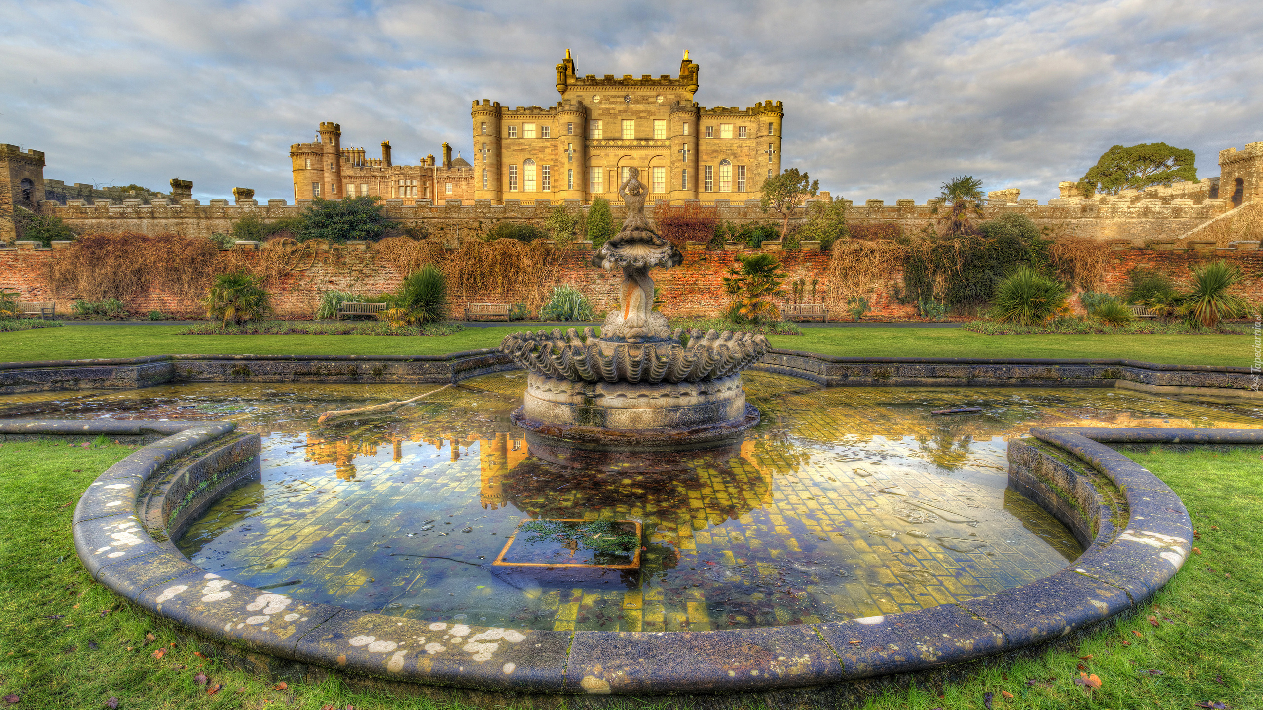 Edytor tapety: Fontanna przed zamkiem Culzean Castle w Szkocji