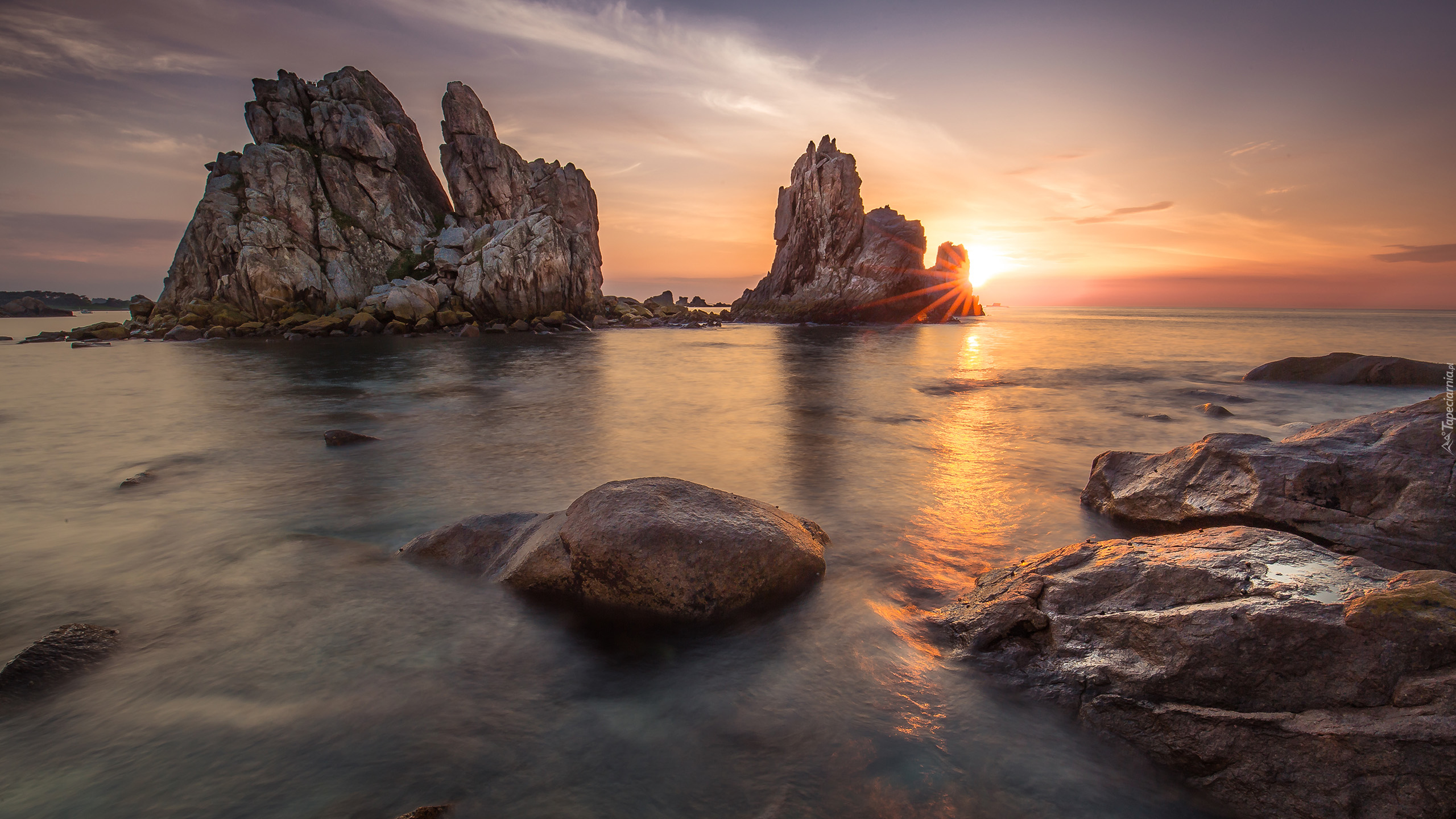Edytor tapety: Morskie skały w świetle zachodzącego słońca