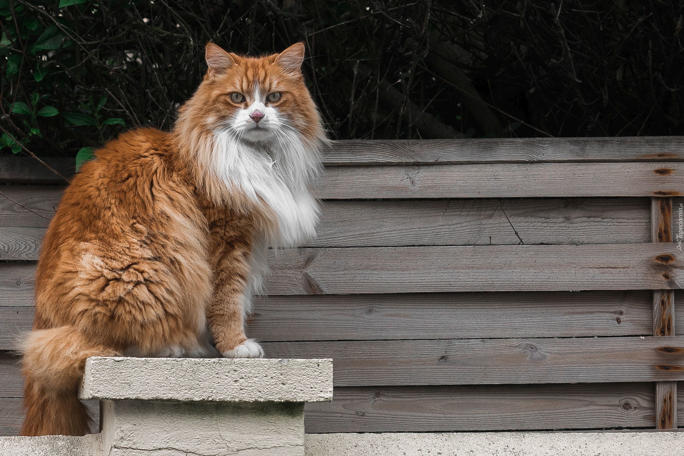 Edytor tapety: Puszysty kot na murku