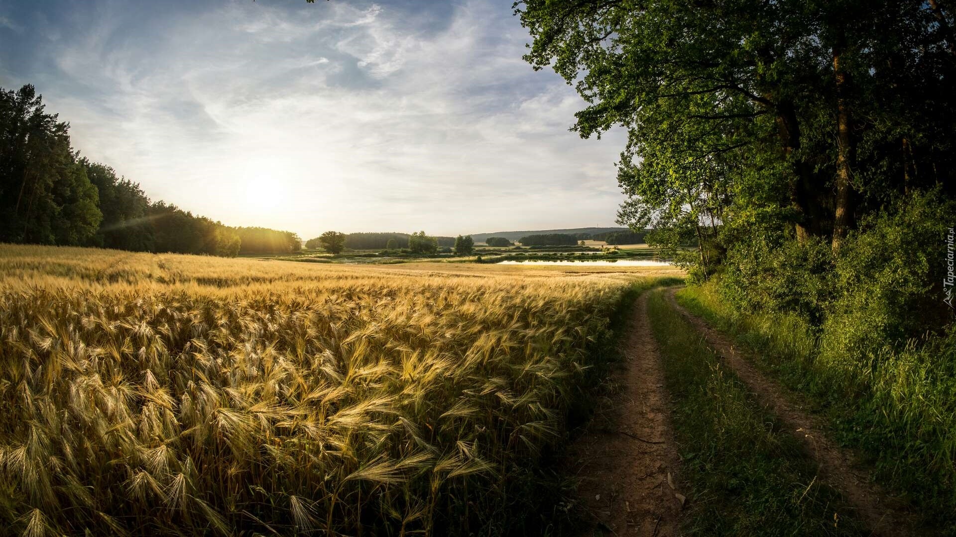 Edytor tapety: Polna droga prowadząca do jeziorka