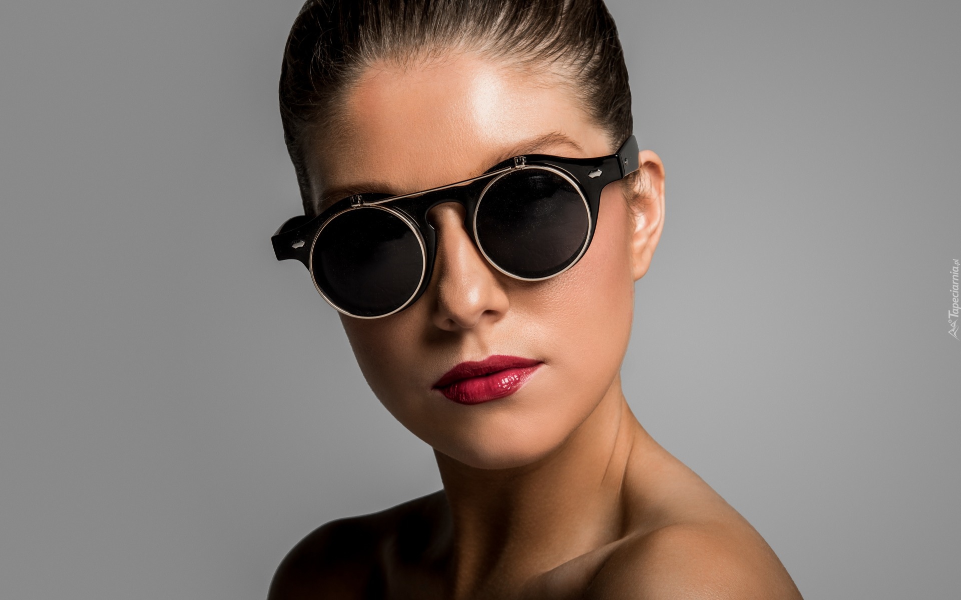 Edytor tapety: Kobieta w okrągłych okularach przeciwsłonecznych