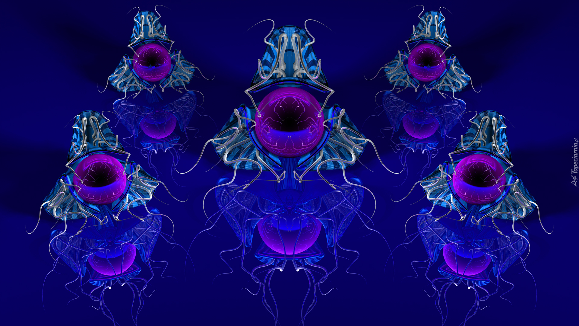 Edytor tapety: Pięć obiektów i ich odbicia w grafice 3D