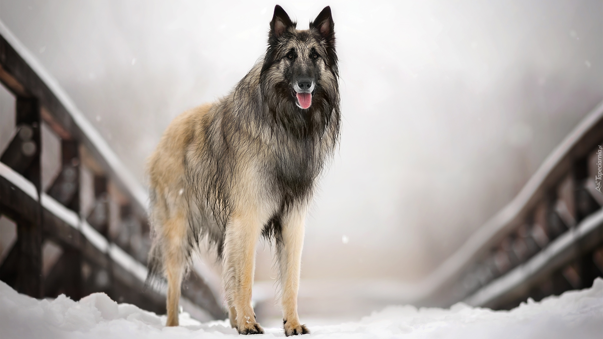 Edytor tapety: Tervueren stoi na ośnieżonym mostku