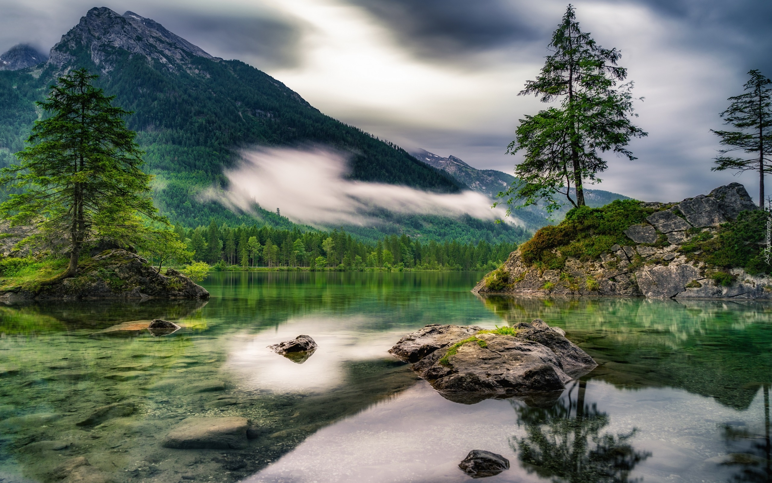 Edytor tapety: Jezioro Hintersee otoczone górami i roślinnością