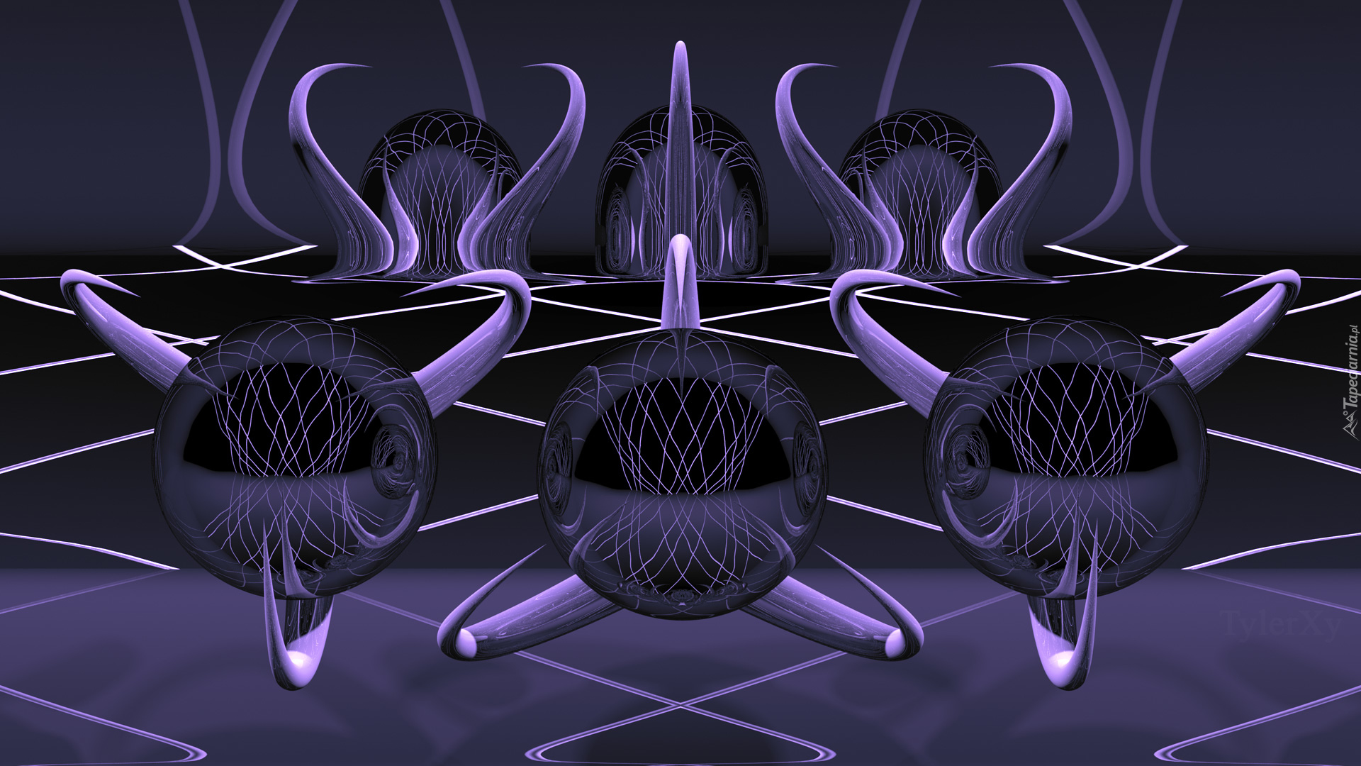Edytor tapety: Pięć obiektów z rogami w grafice 3D