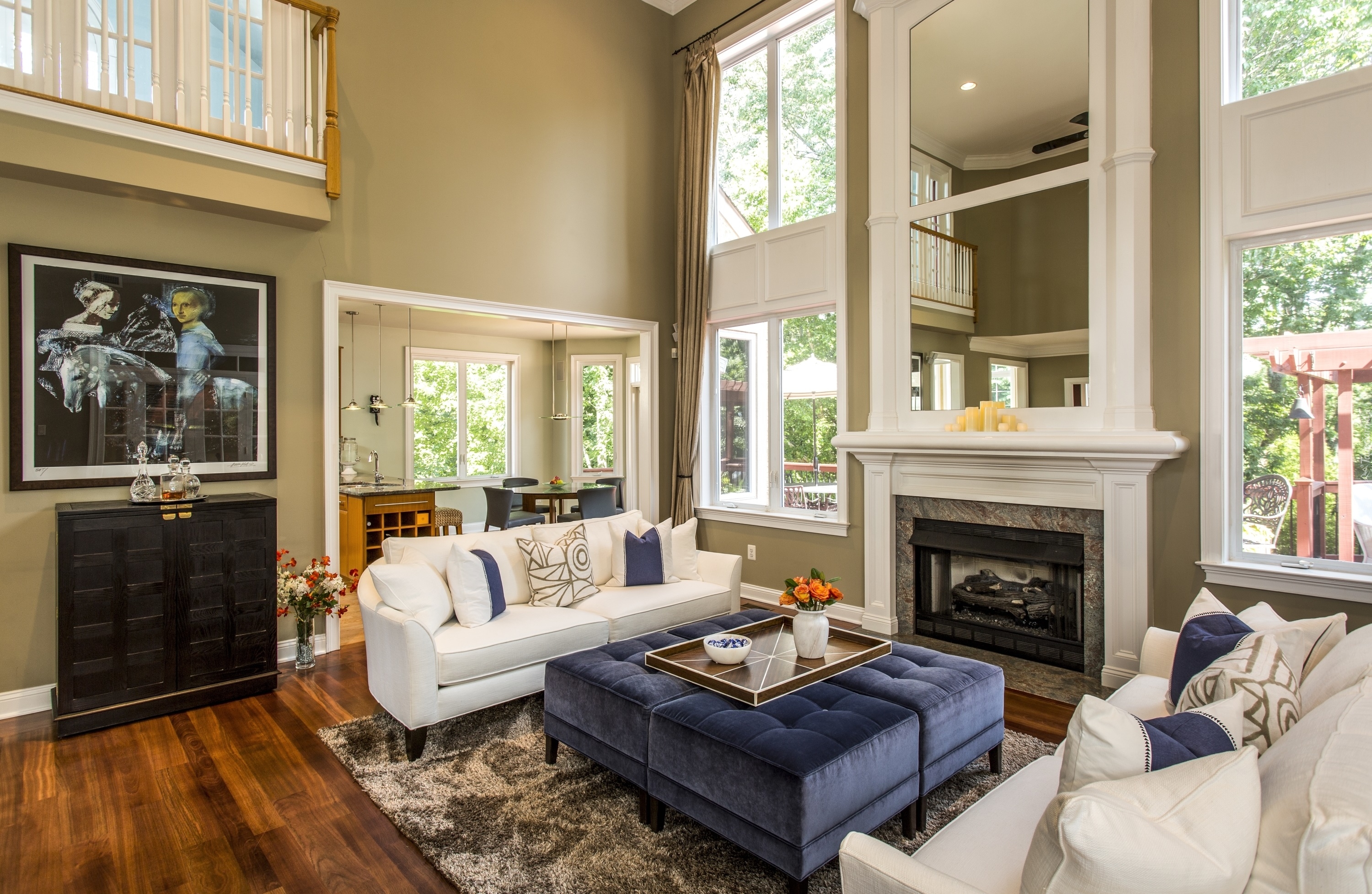 Edytor tapety: Umeblowany salon z widokiem na kuchnię i jadalnię