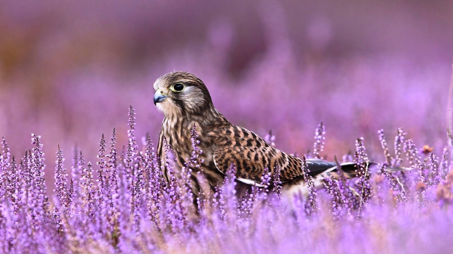 Edytor tapety: Pustułka zwyczajna wśród wrzosu