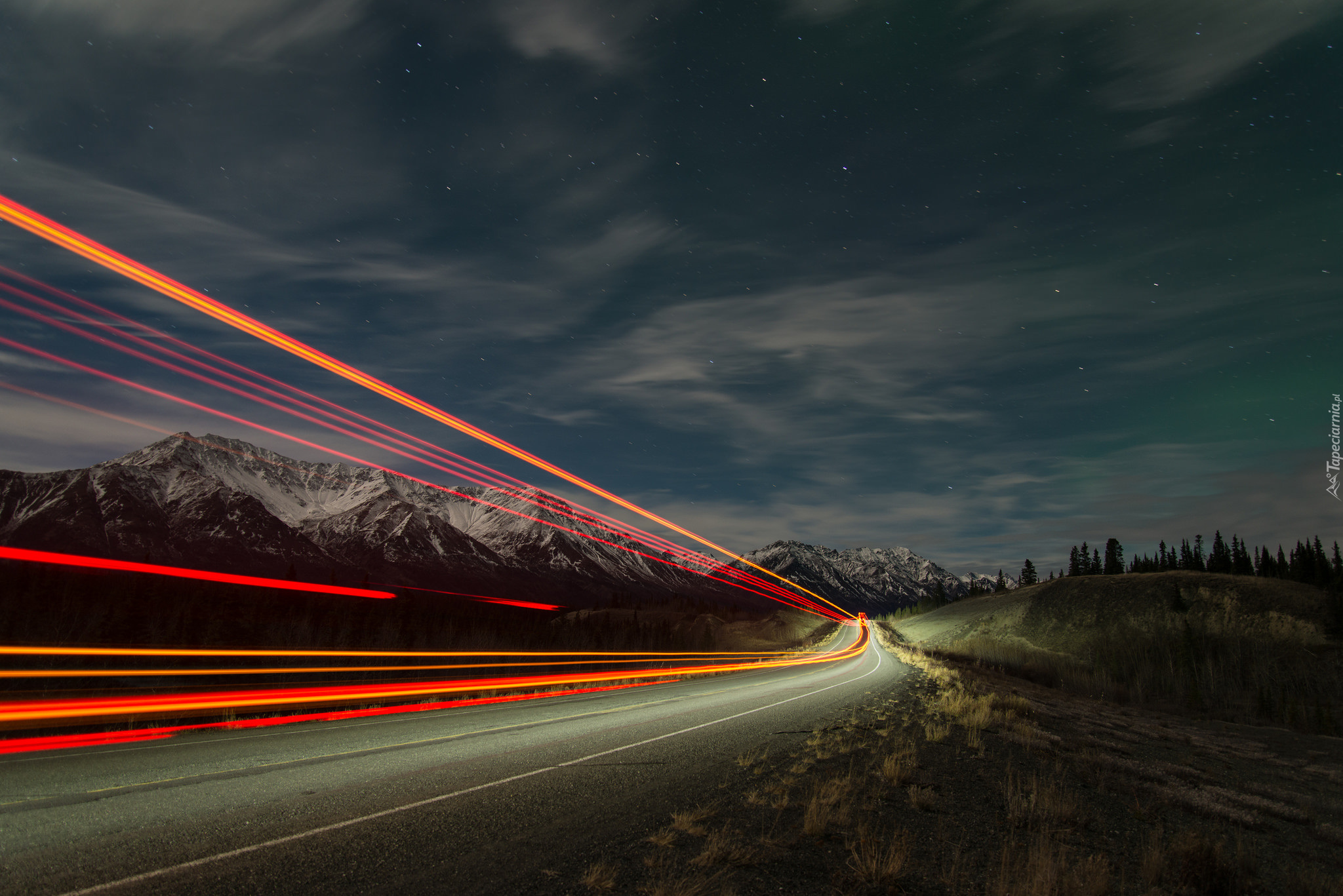 Edytor tapety: Ekspozycja świateł nad górską drogą